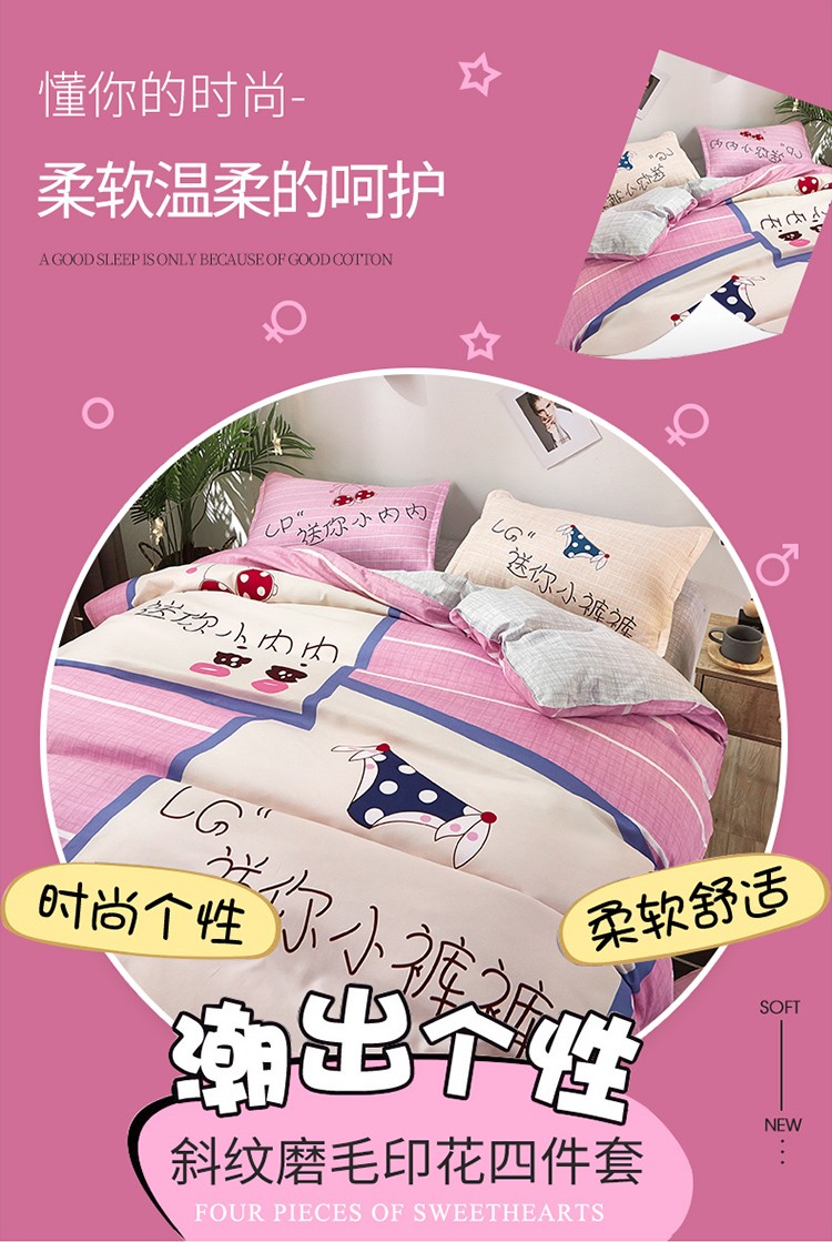 当前位置: 91家纺网 > 商品网购 > 床品套件 > 四件套 > 化纤普通四件套 > KT猫直营店 2024新款大版卡通四件套 告白之夜