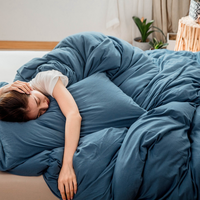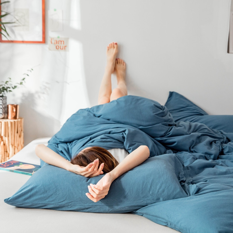当前位置: 91家纺网 > 商品网购 > 床品套件 > 四件套 > 针织棉四件套 > 华超针织 2021新款针织纯色四件套 海蓝配杏色