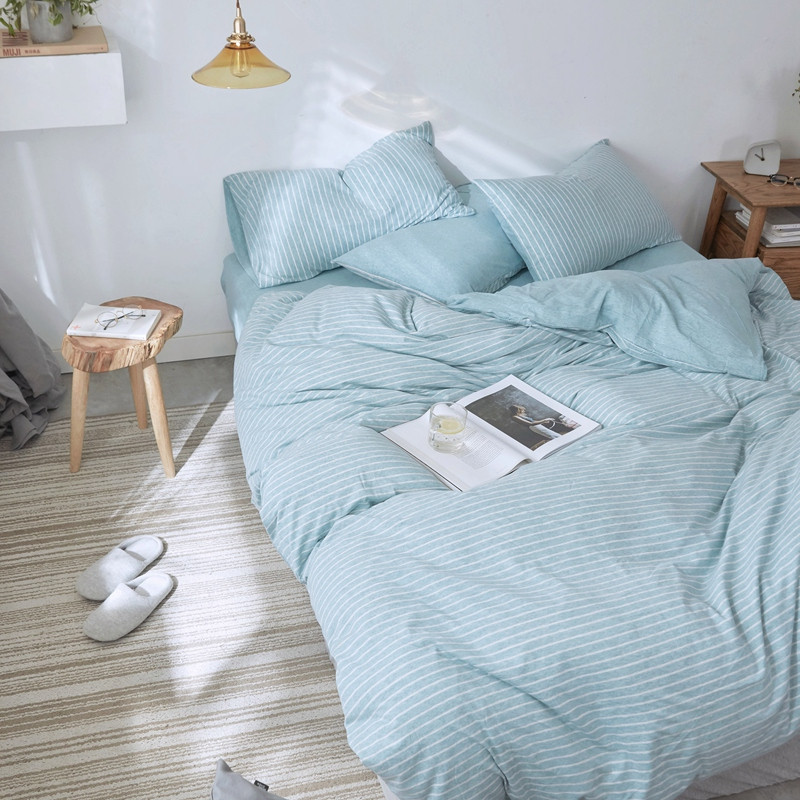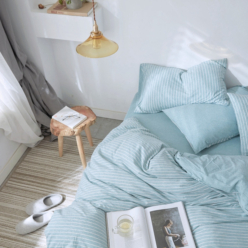 当前位置: 91家纺网 > 商品网购 > 床品套件 > 四件套 > 针织棉四件套 > 华超针织 2021新款针织四件套 蓝白细条