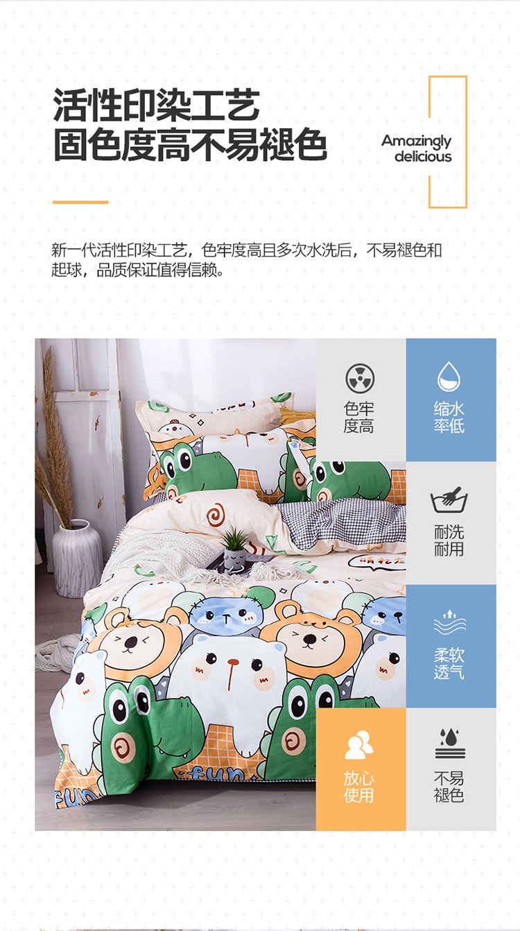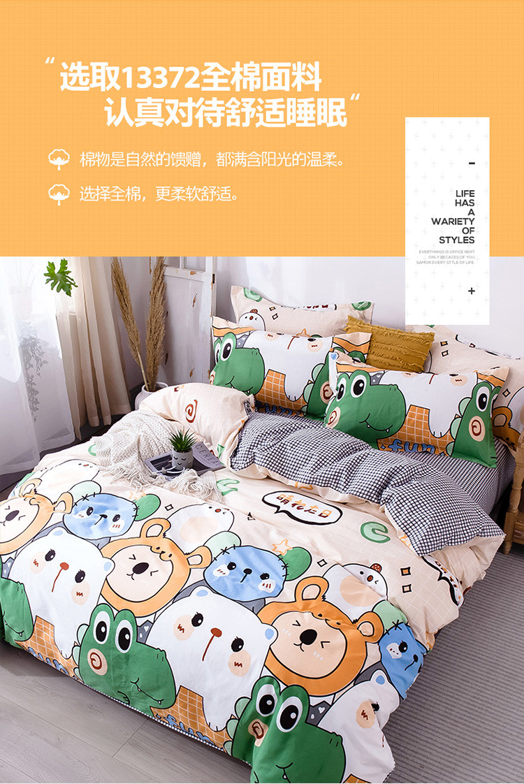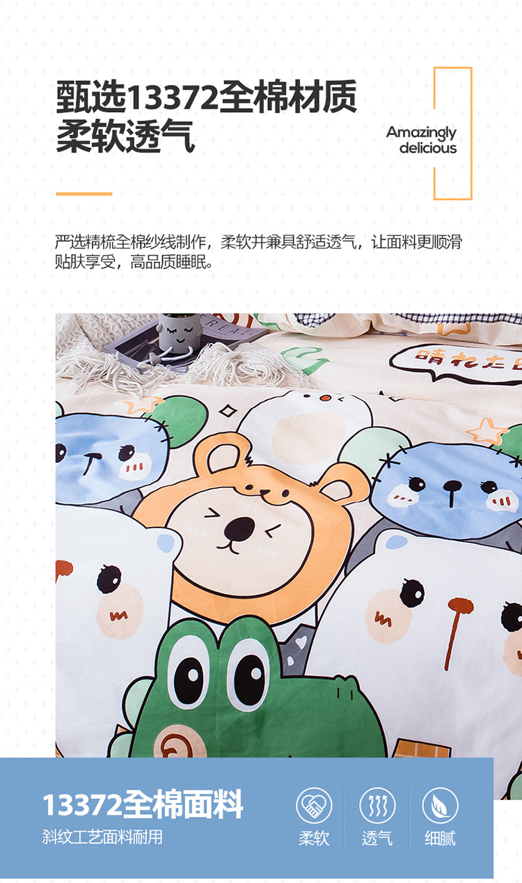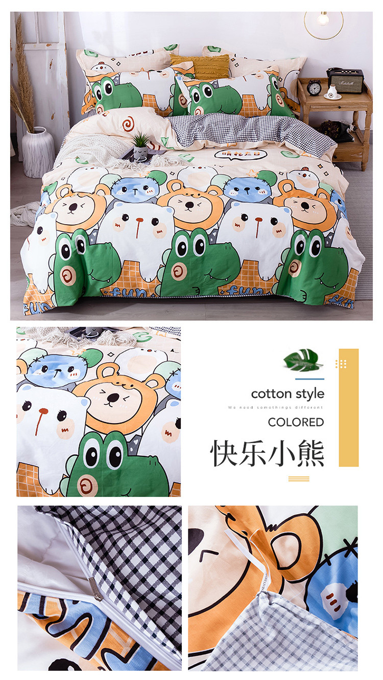当前位置: 91家纺网 > 商品网购 > 床品套件 > 四件套 > 全棉普通四件套 > 宝齐莱家纺 2020新款13372印花小清新四件套 快乐小熊