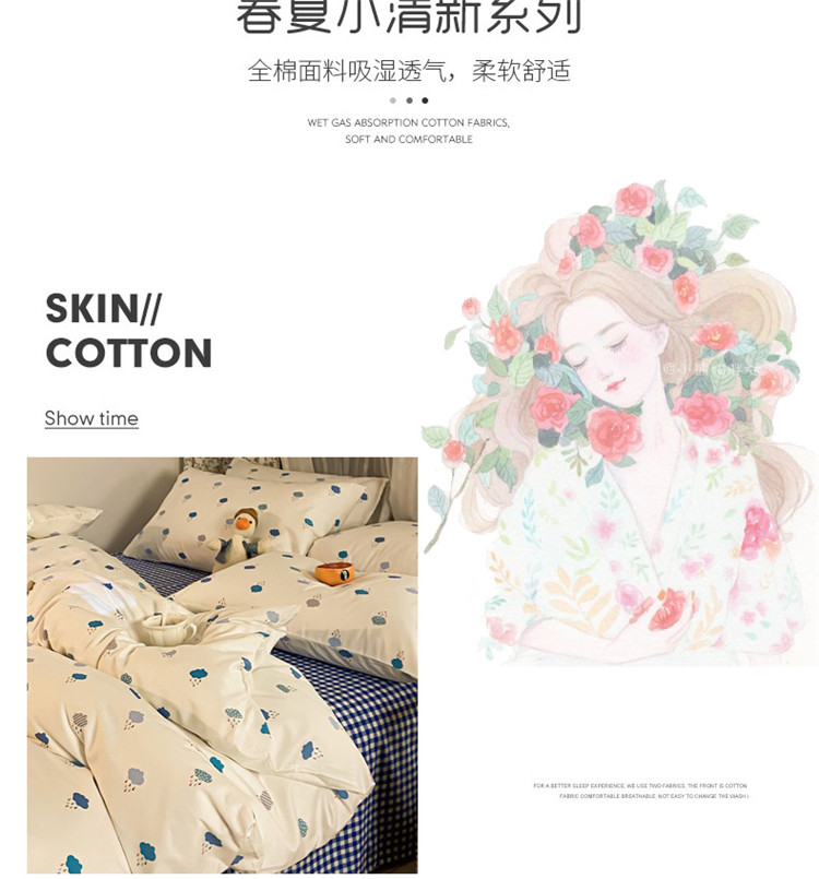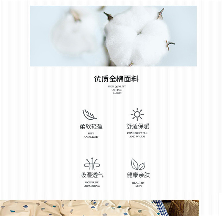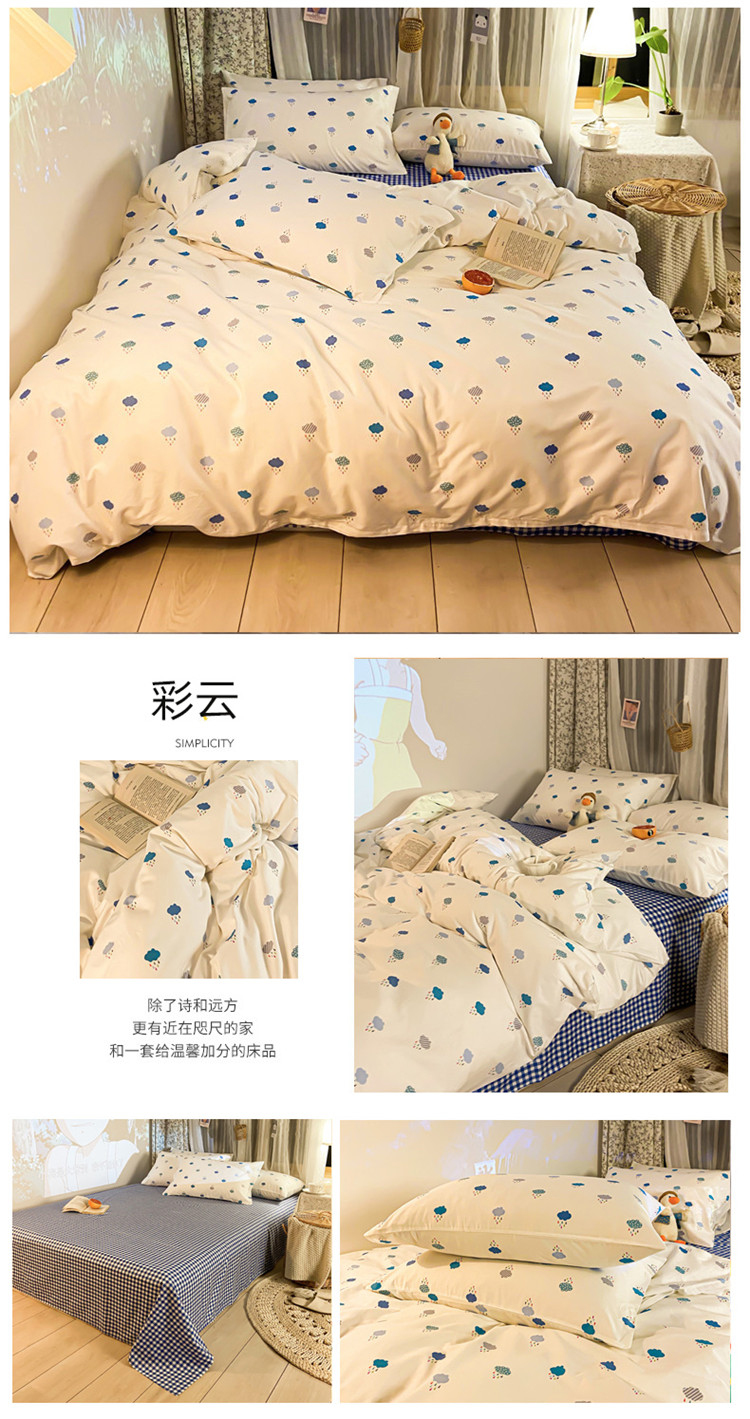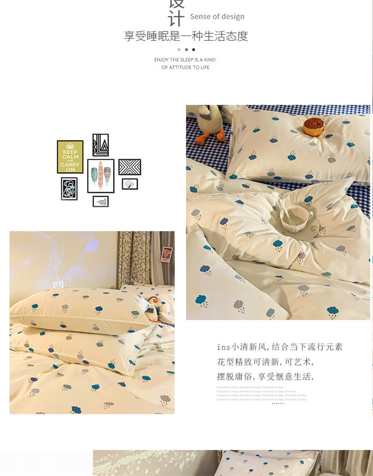 当前位置: 91家纺网 > 商品网购 > 床品套件 > 四件套 > 全棉普通四件套 > 感遇家纺 2020新款全棉小清新卡通四件套新花色 彩云