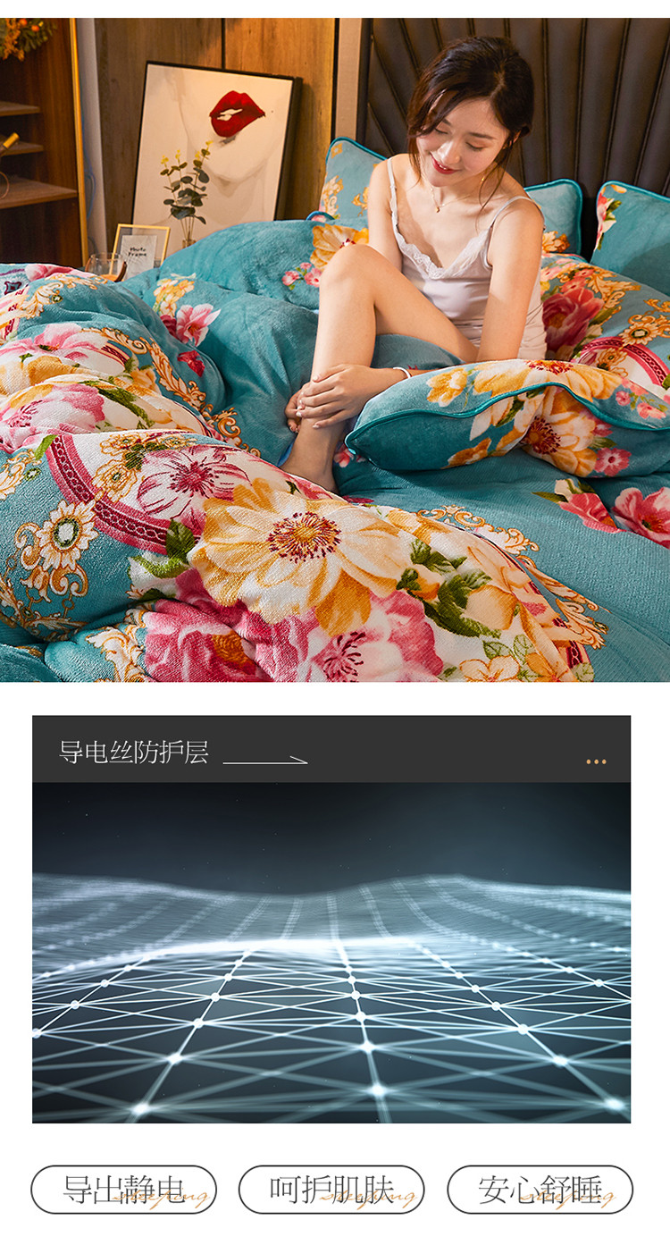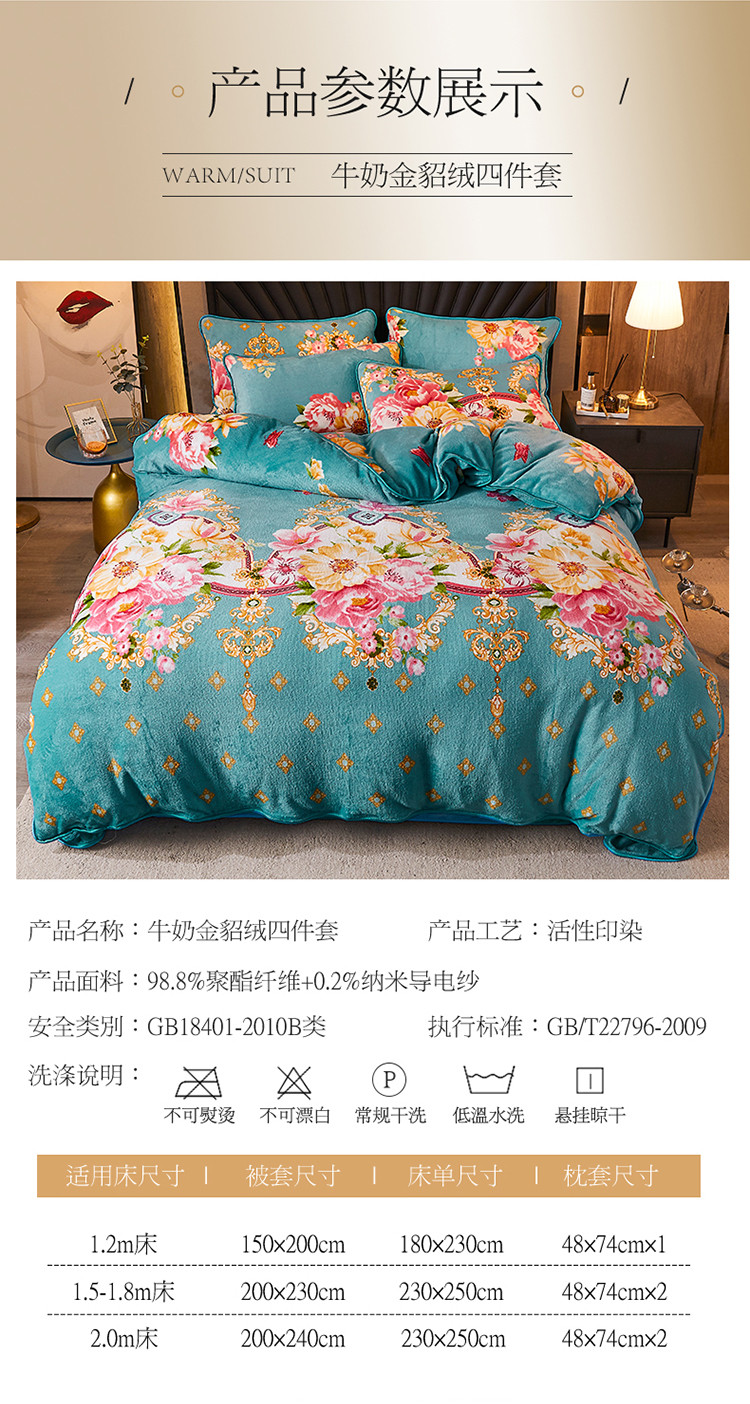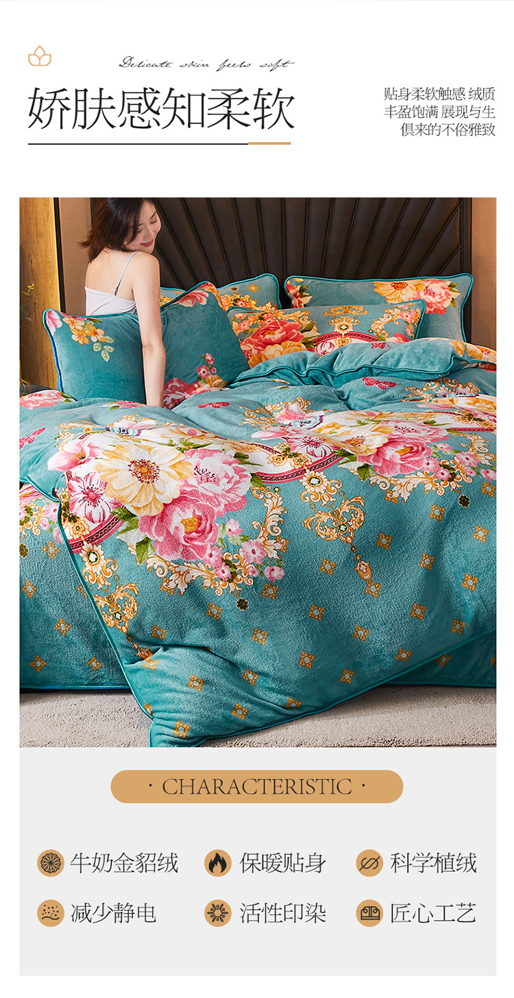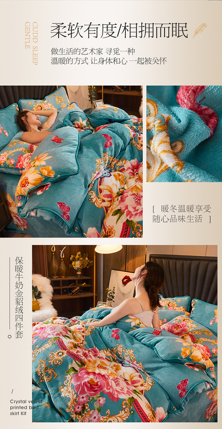商品名称:迷仙巢 2020新款牛奶金貂绒四件套 五月花情