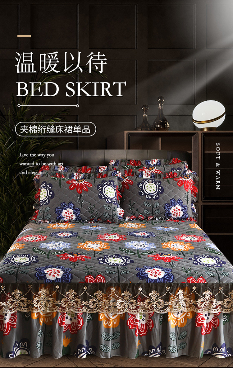 (总)宜凡家纺 2026新款全棉法式夹棉床裙款三件套,尘世浮华,春日微光,花黛织梦,曼妙花香,晴空,寻觅花季