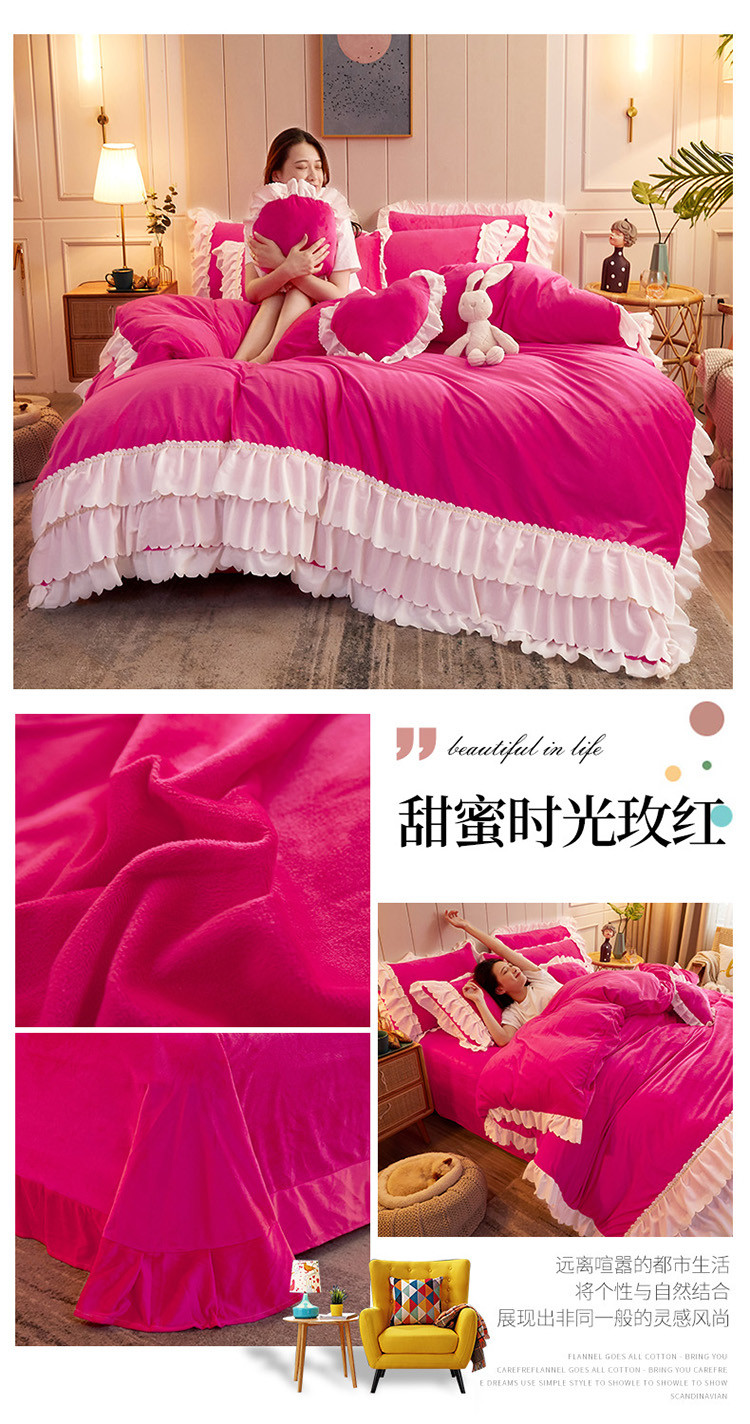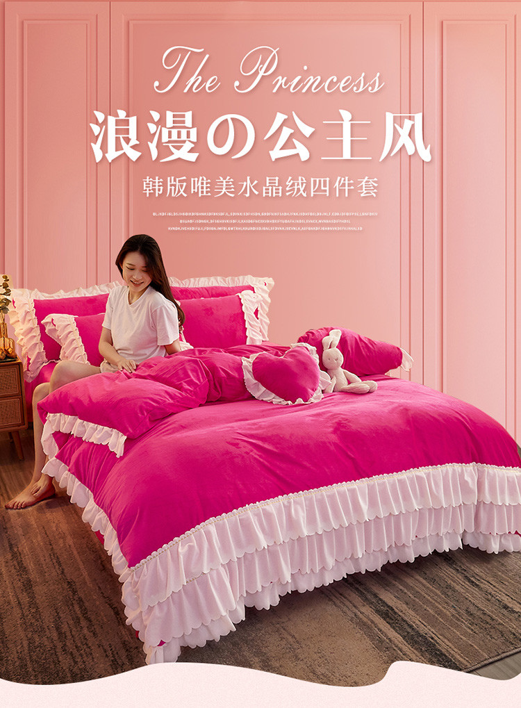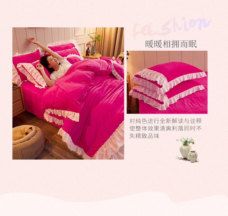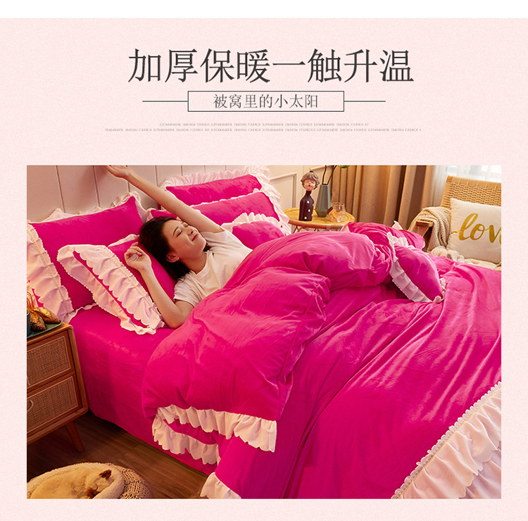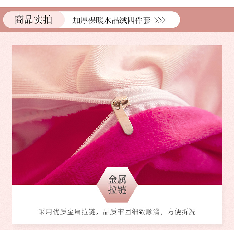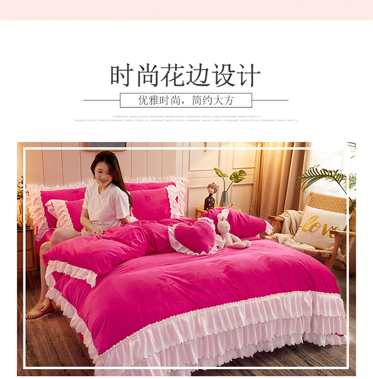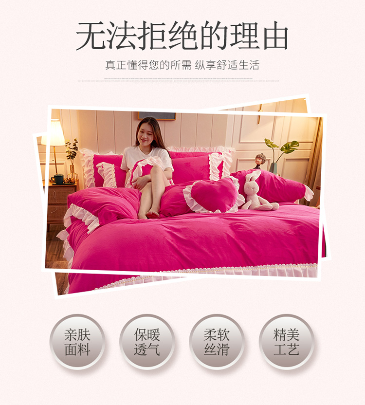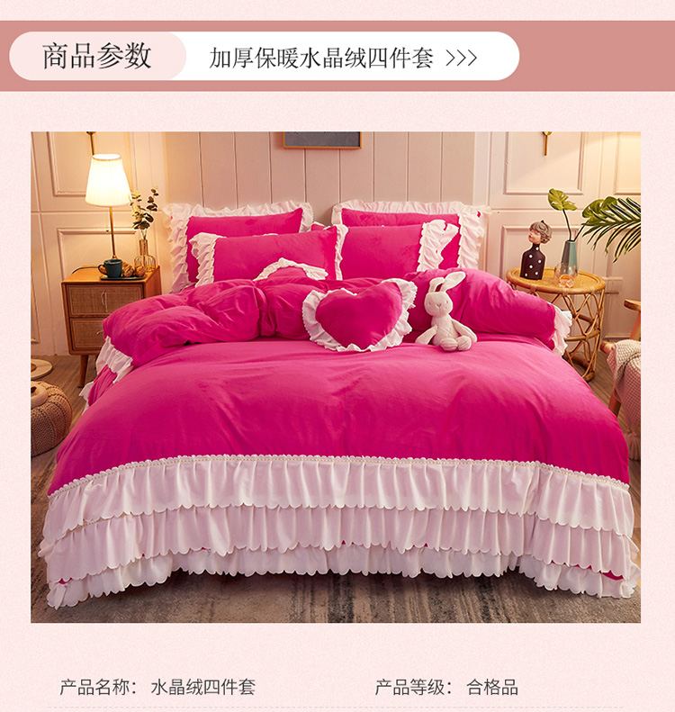 商品名称:铠畅 2020新款水晶绒四件套 甜蜜时光-玫红