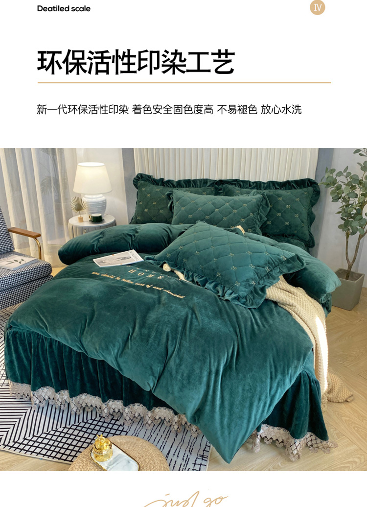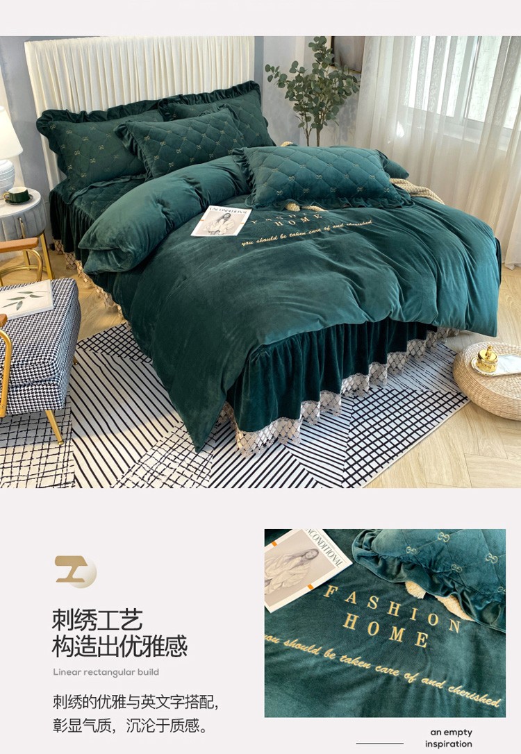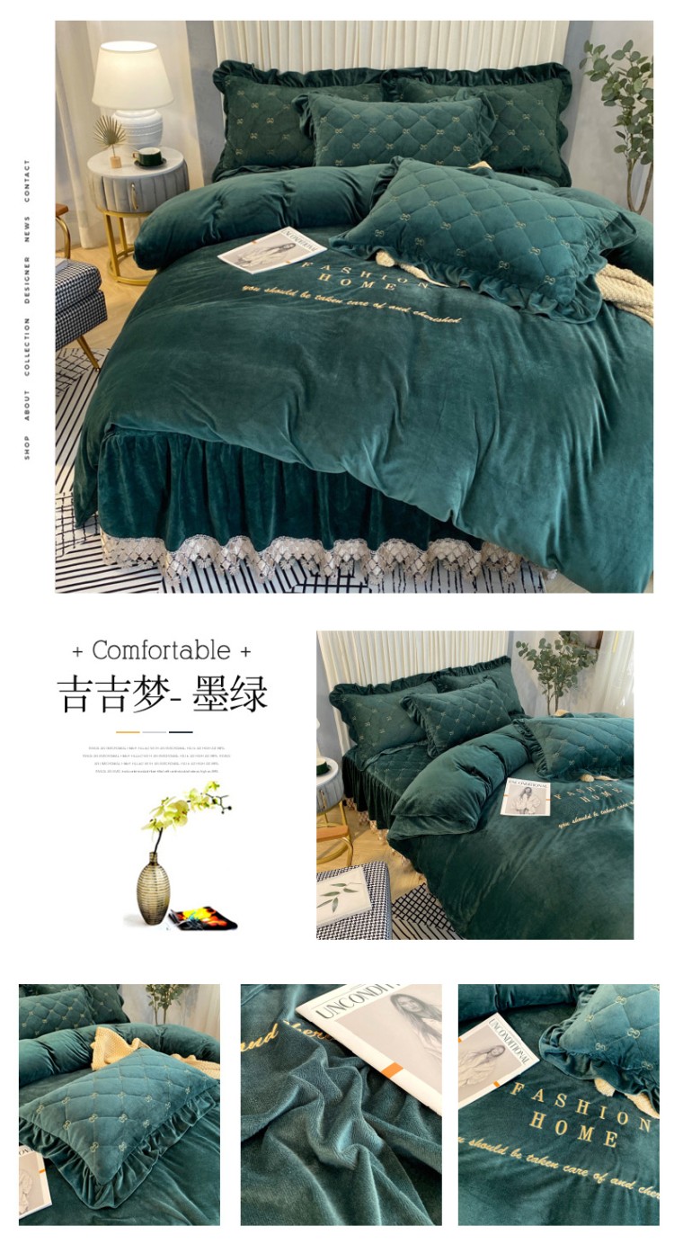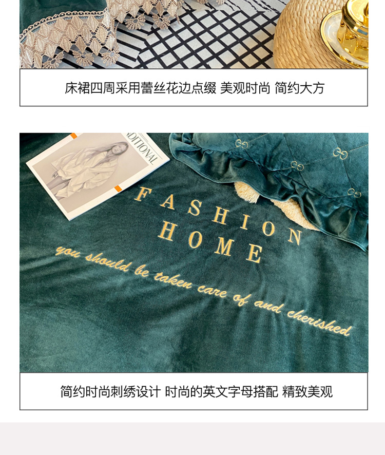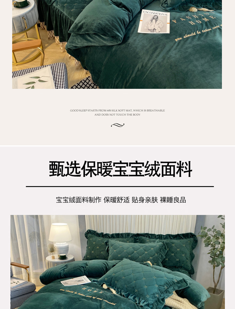 当前位置: 91家纺网 > 商品网购 > 床品套件 > 四件套 > 宝宝绒四件套 > 星尚家纺 2020新款宝宝绒夹棉床裙床盖四件套吉吉梦- 墨绿