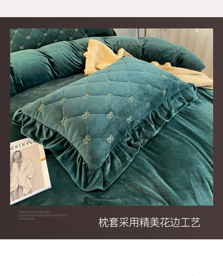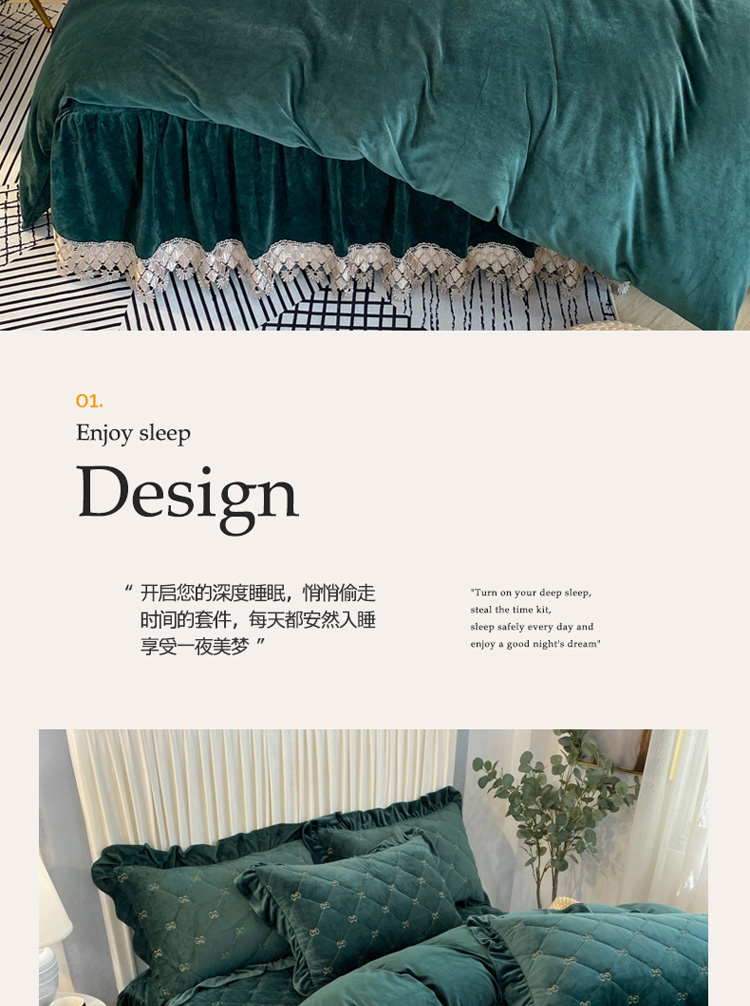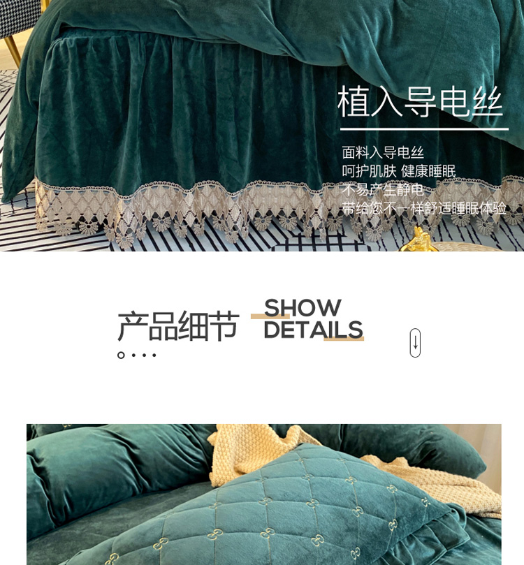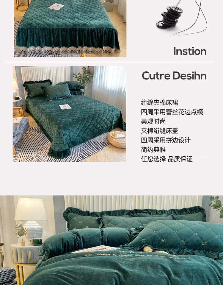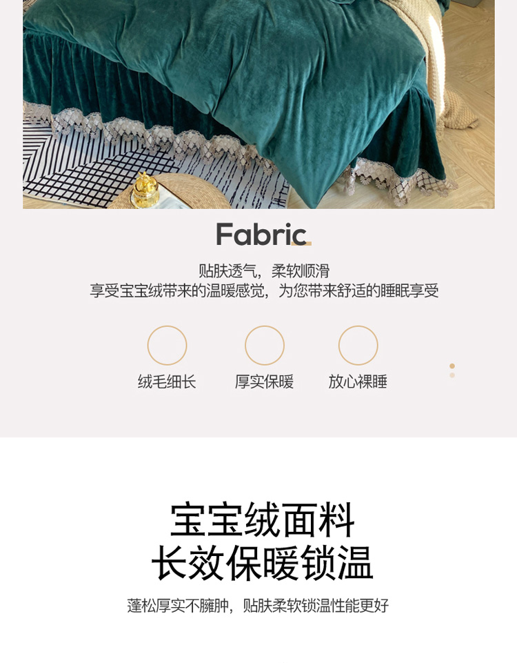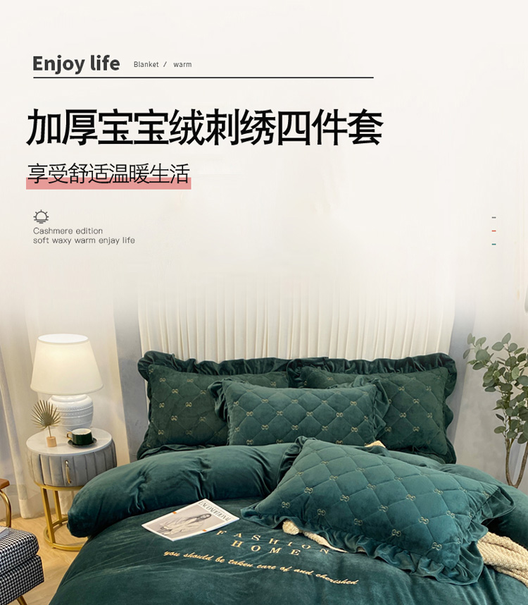 当前位置: 91家纺网 > 商品网购 > 床品套件 > 四件套 > 宝宝绒四件套 > 星尚家纺 2020新款宝宝绒夹棉床裙床盖四件套吉吉梦- 墨绿