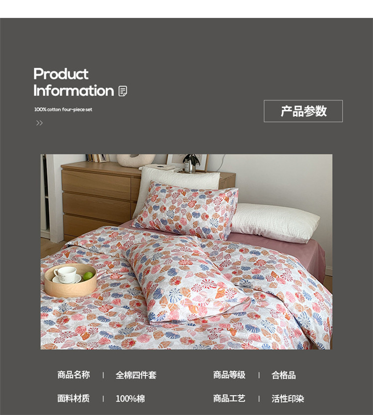 (总)窝米2022新款13370全棉四件套花卉系列,春风里,青柚,秋收,水波纹米驼,水波纹炭黑,恬谧,夏花,云溪红,云溪黄
