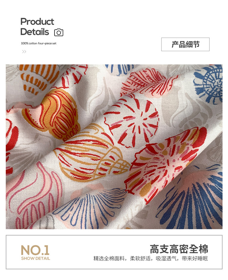 商品名称:窝米 2021新款全棉四件套花卉系列 海螺姑娘