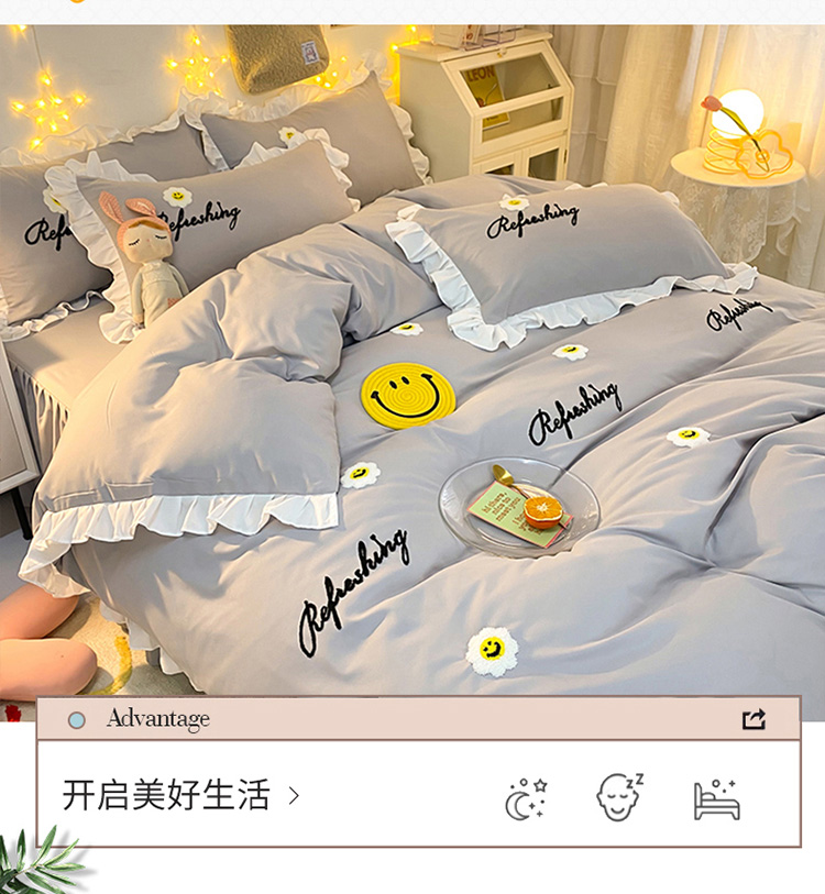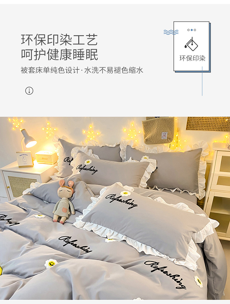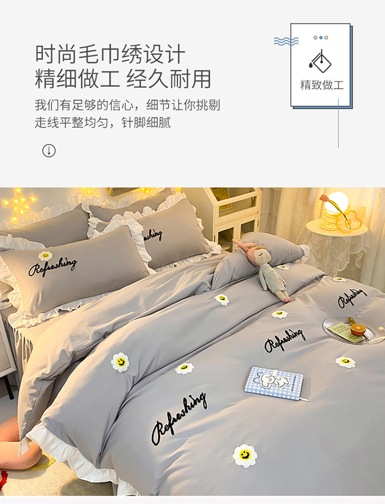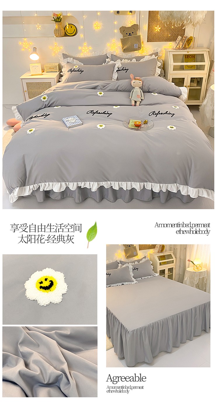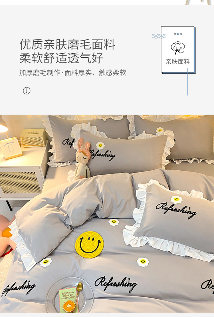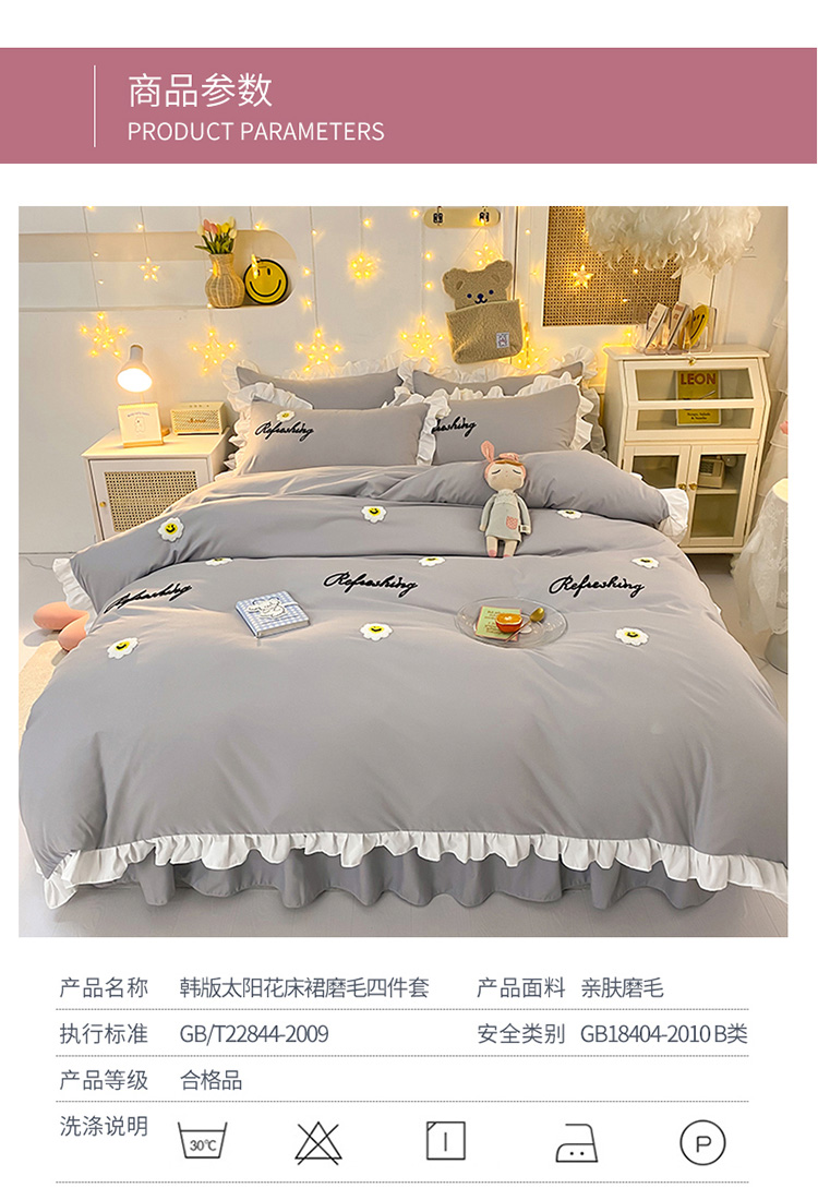 当前位置: 91家纺网 > 商品网购 > 床品套件 > 四件套 > 普通磨毛四件套 > 包小包 2024新款韩版太阳花亲肤磨毛四件套 太阳花-经典灰