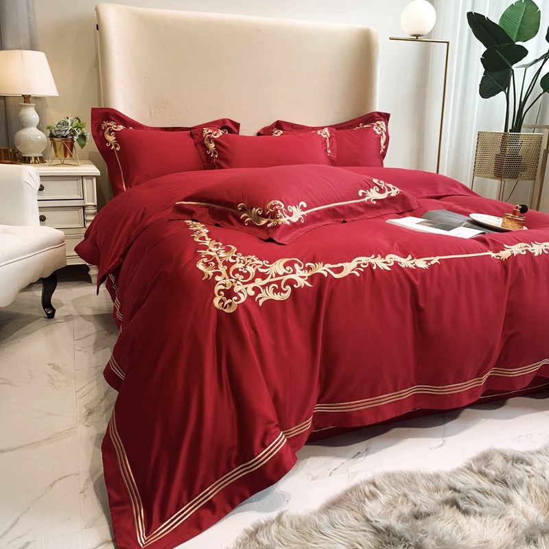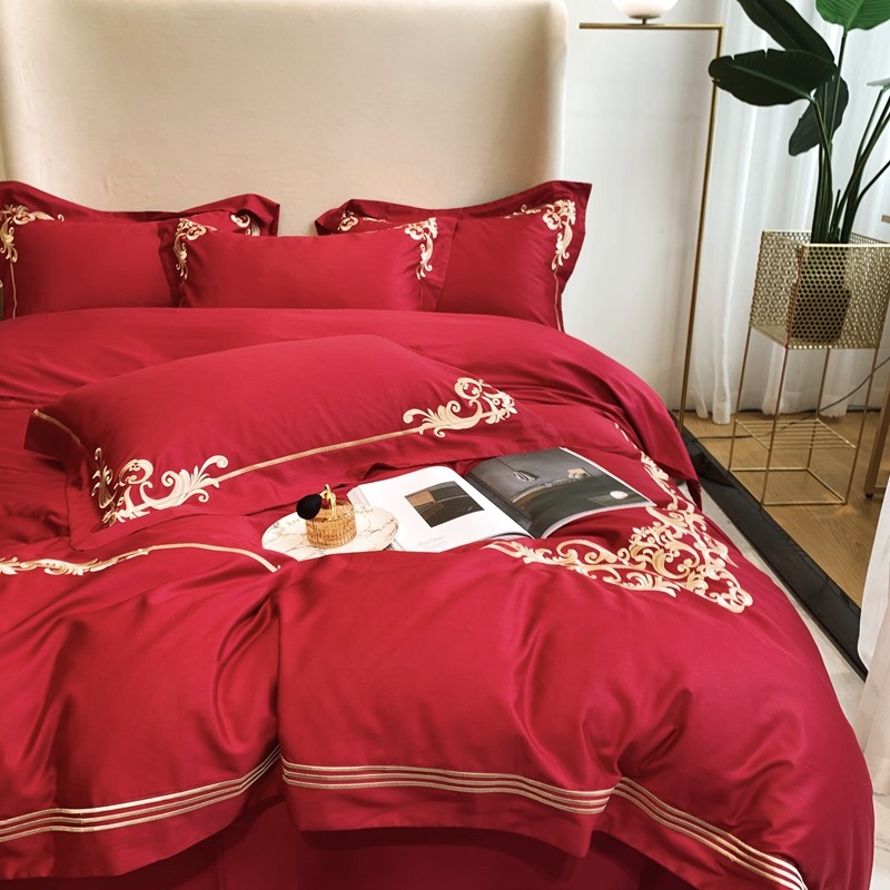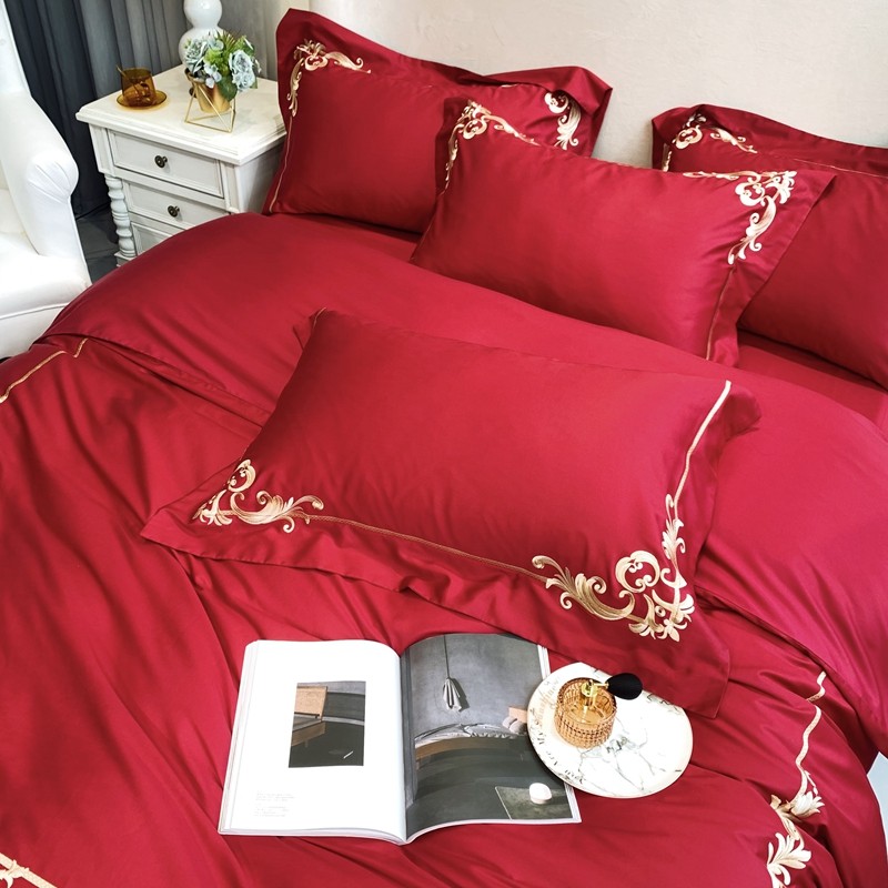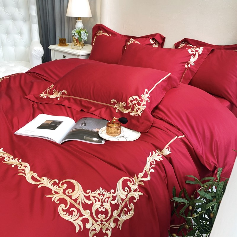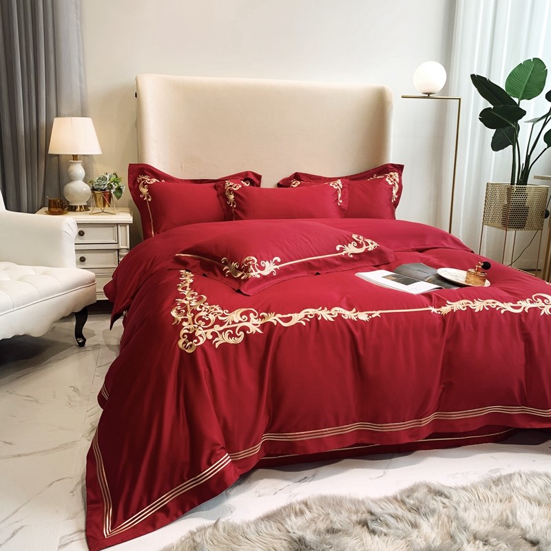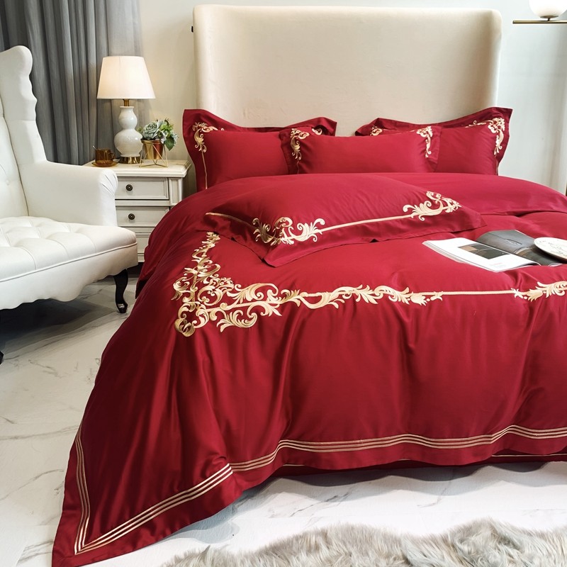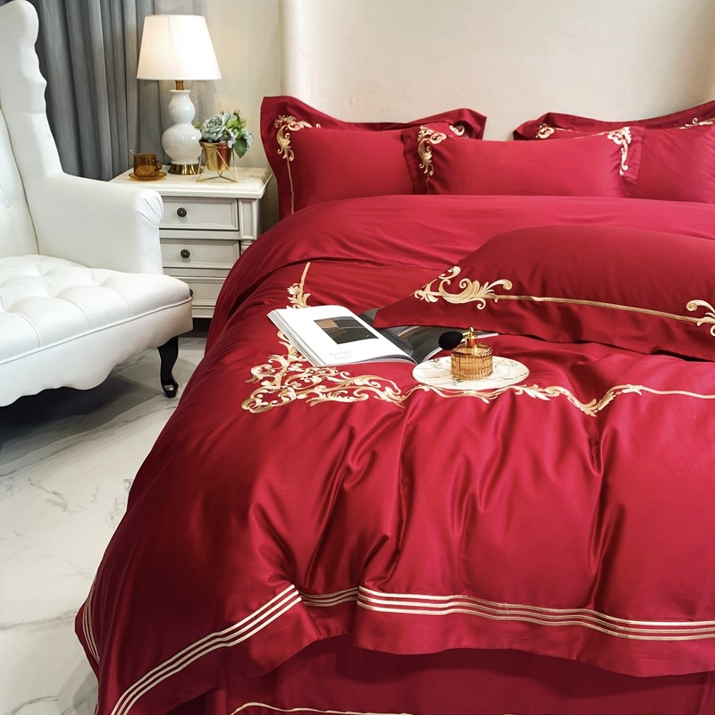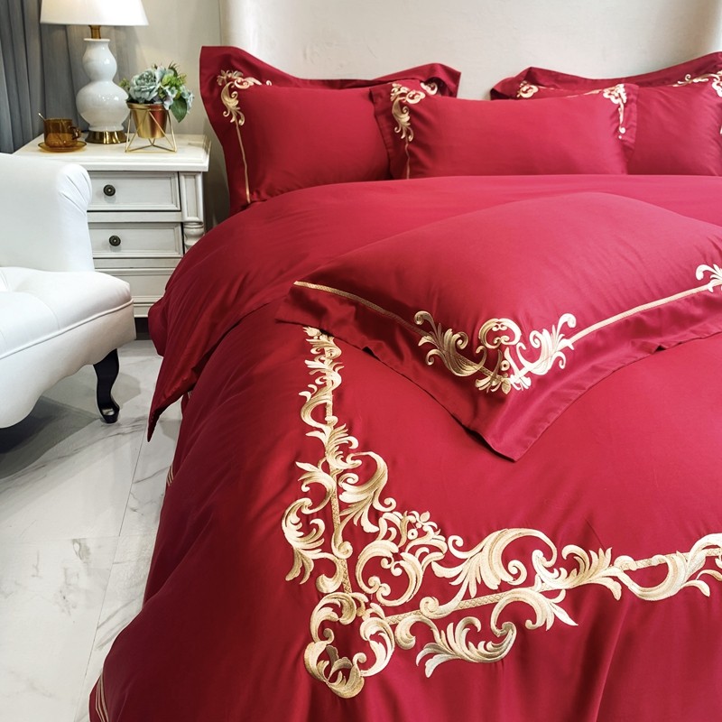 馨蕊2021全棉60s双股埃及长绒棉四件套-巴比伦系列温莎红