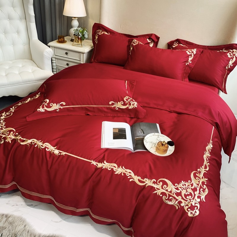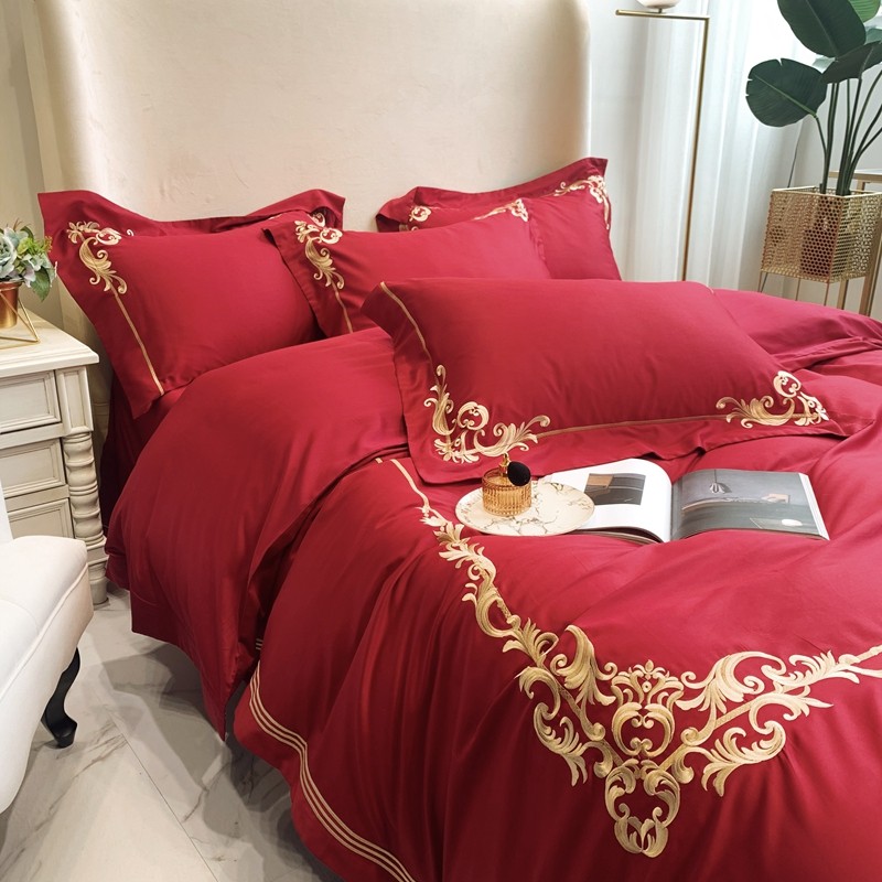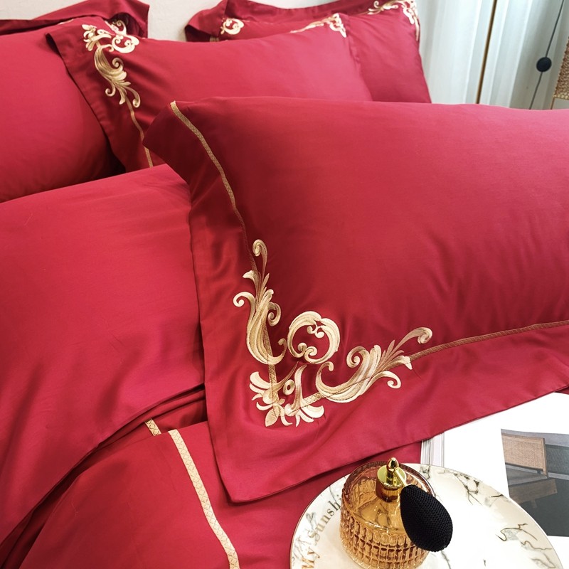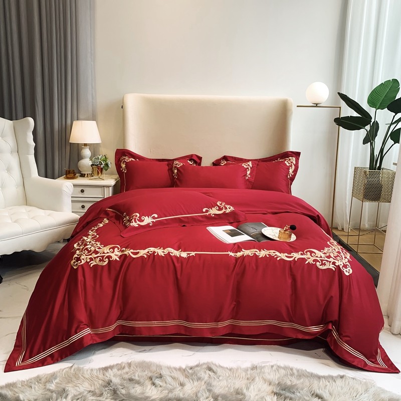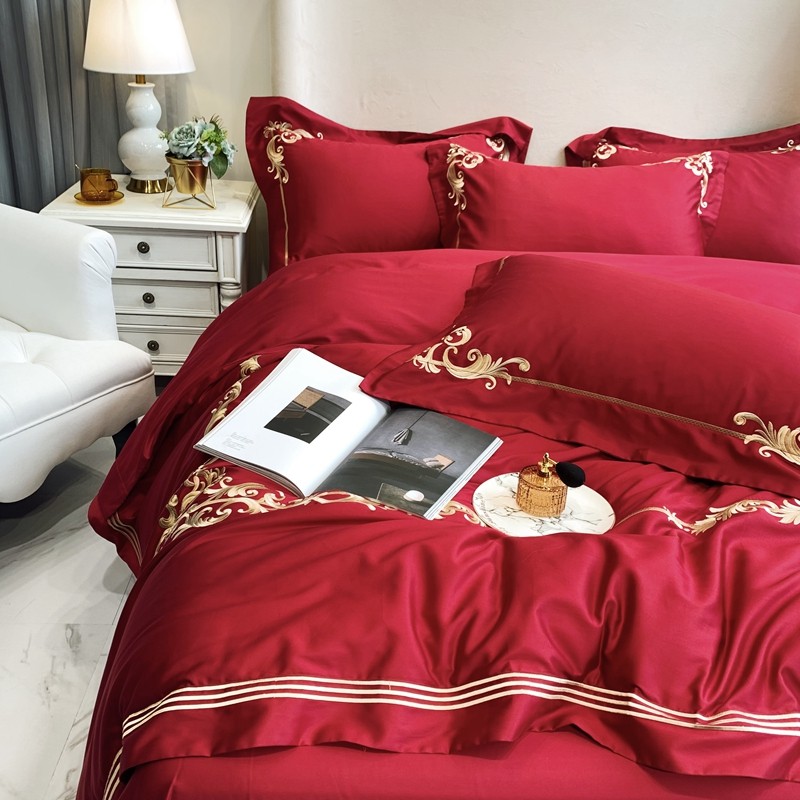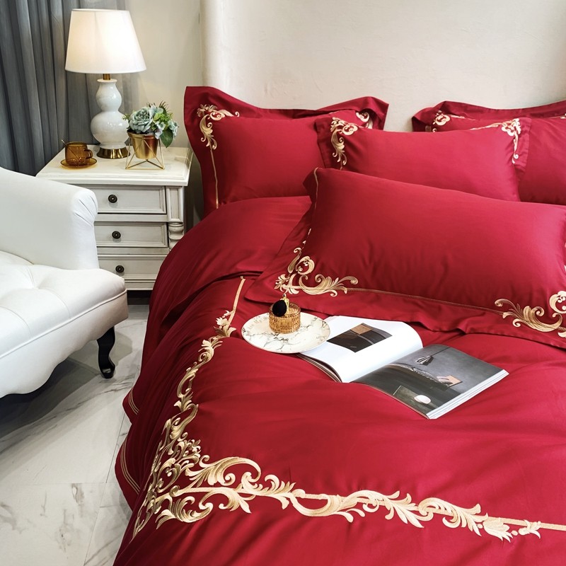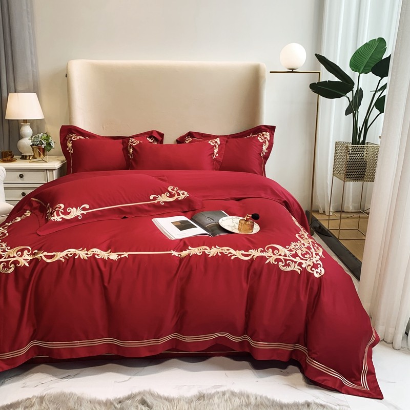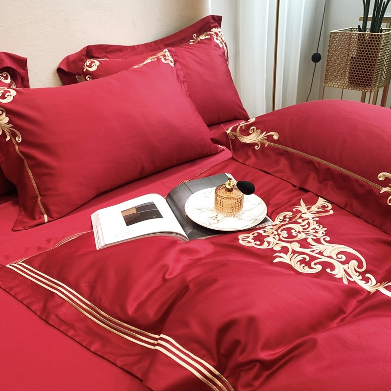 馨蕊2021全棉60s双股埃及长绒棉四件套-巴比伦系列温莎红