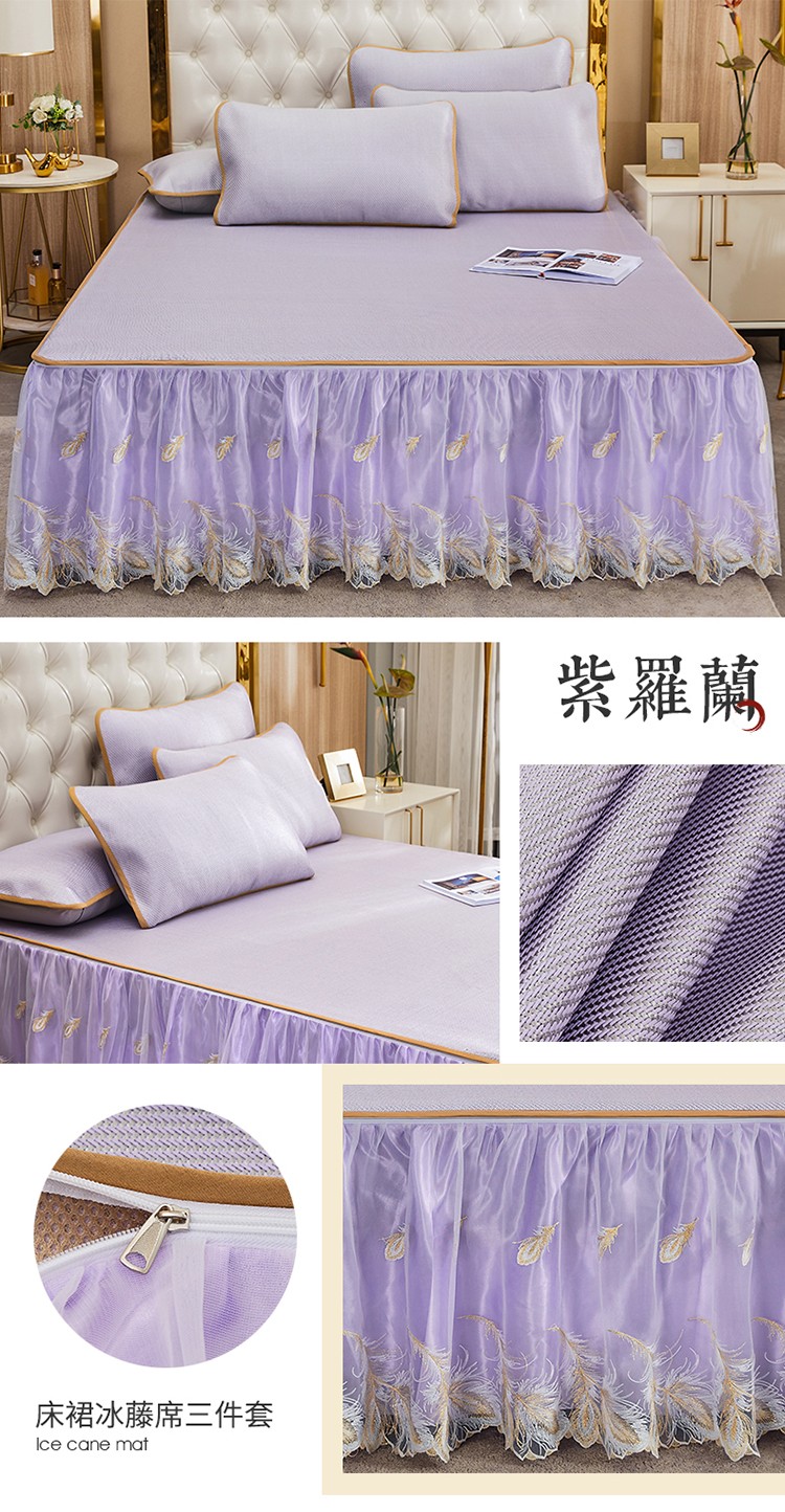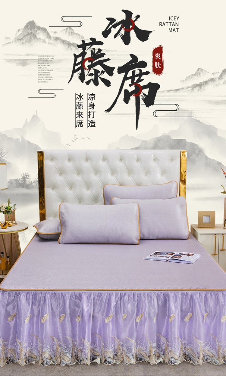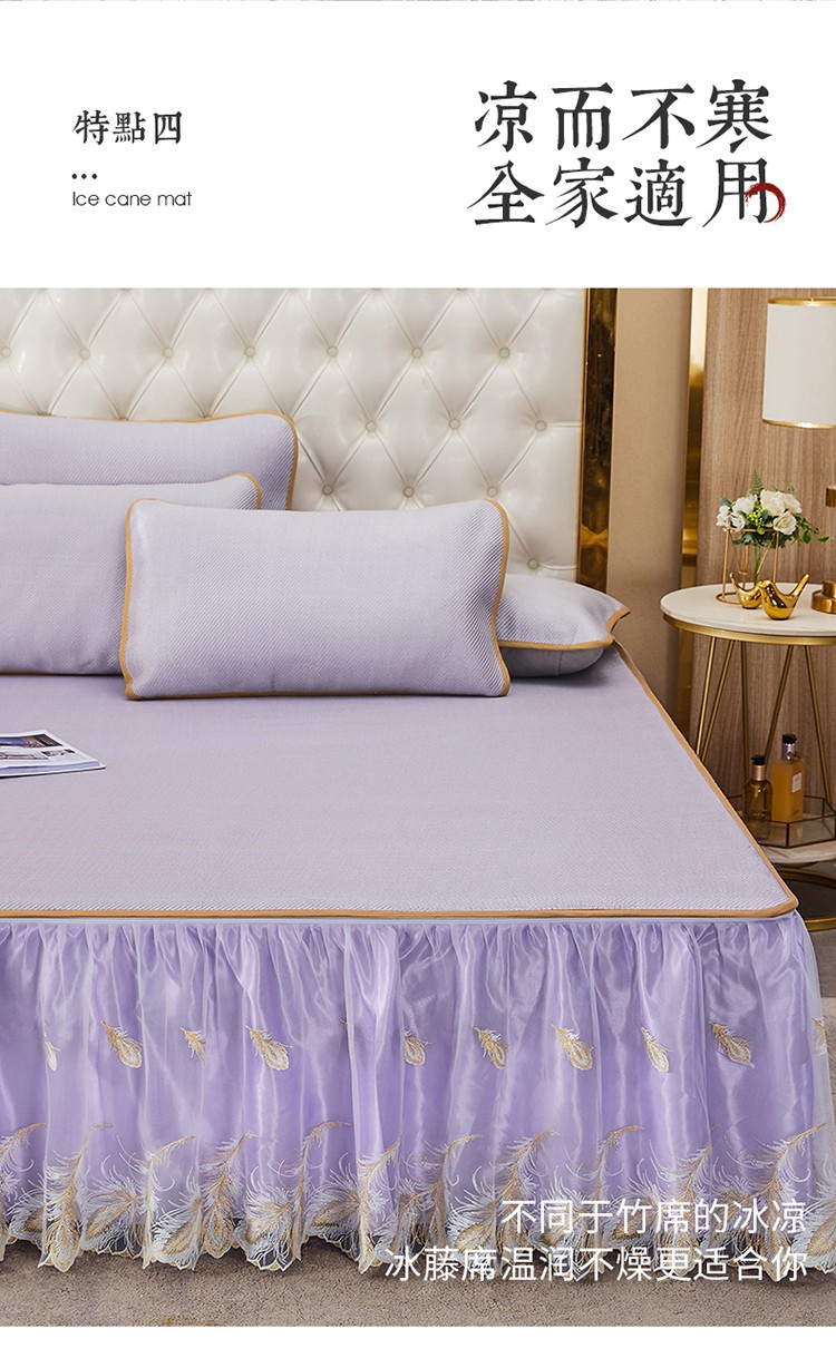 网红馆 2025新款蕾丝花边宽边冰藤席 白边紫罗兰