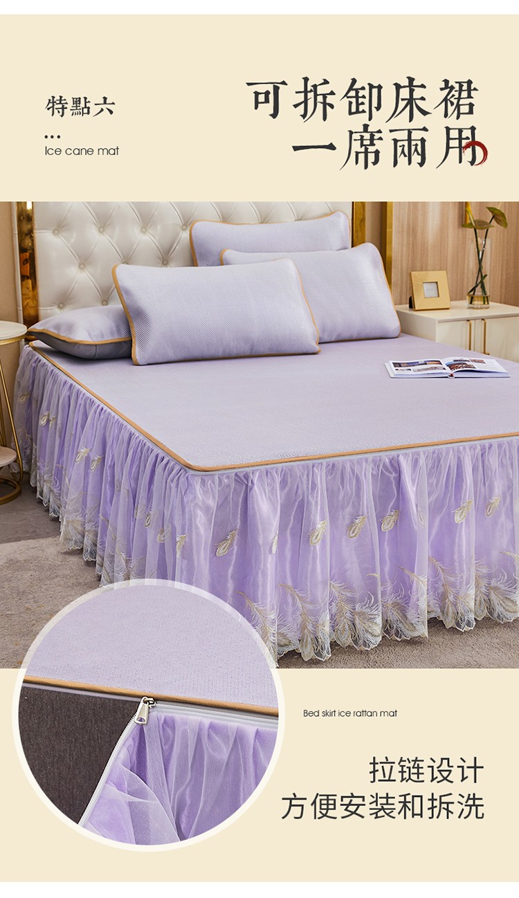 商品名称:网红馆 2025新款蕾丝花边宽边冰藤席 白边紫罗兰