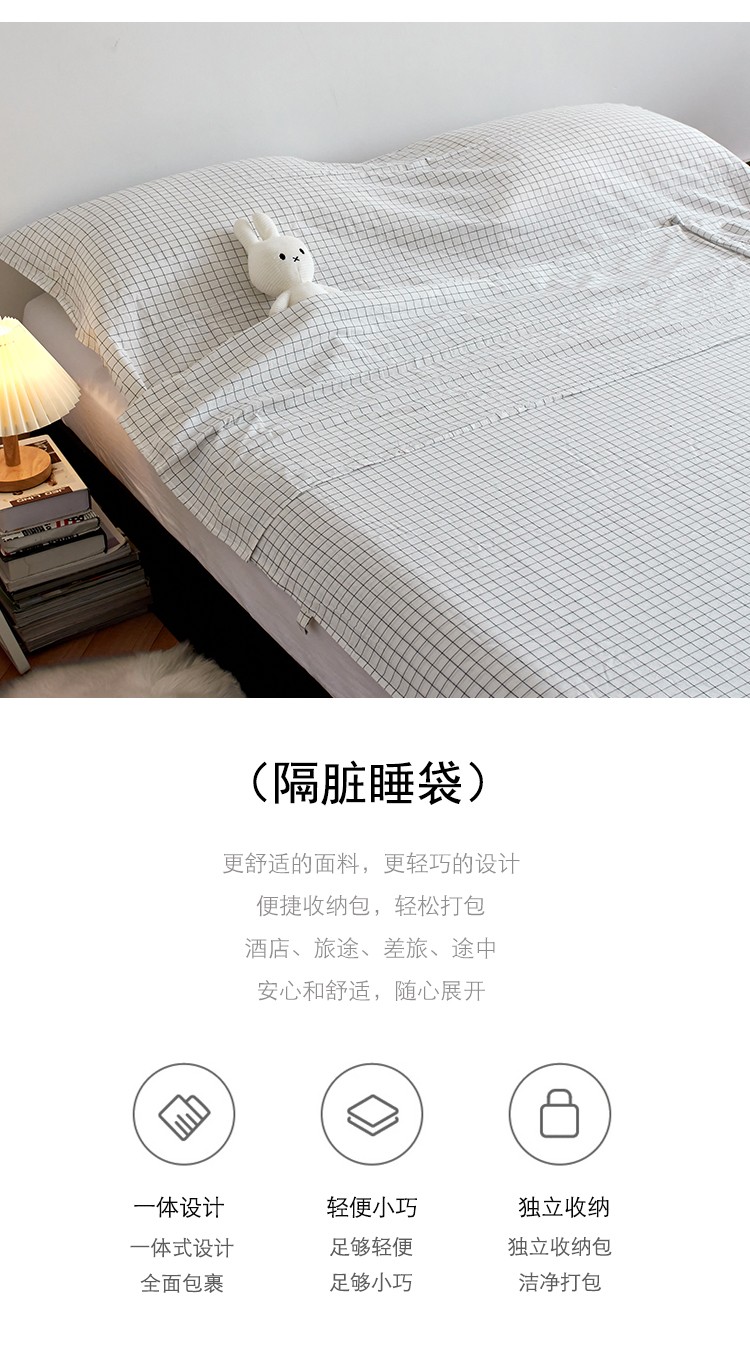 无印色织全棉水洗棉酒店隔脏睡袋便携式出差旅游行单双人床单被套