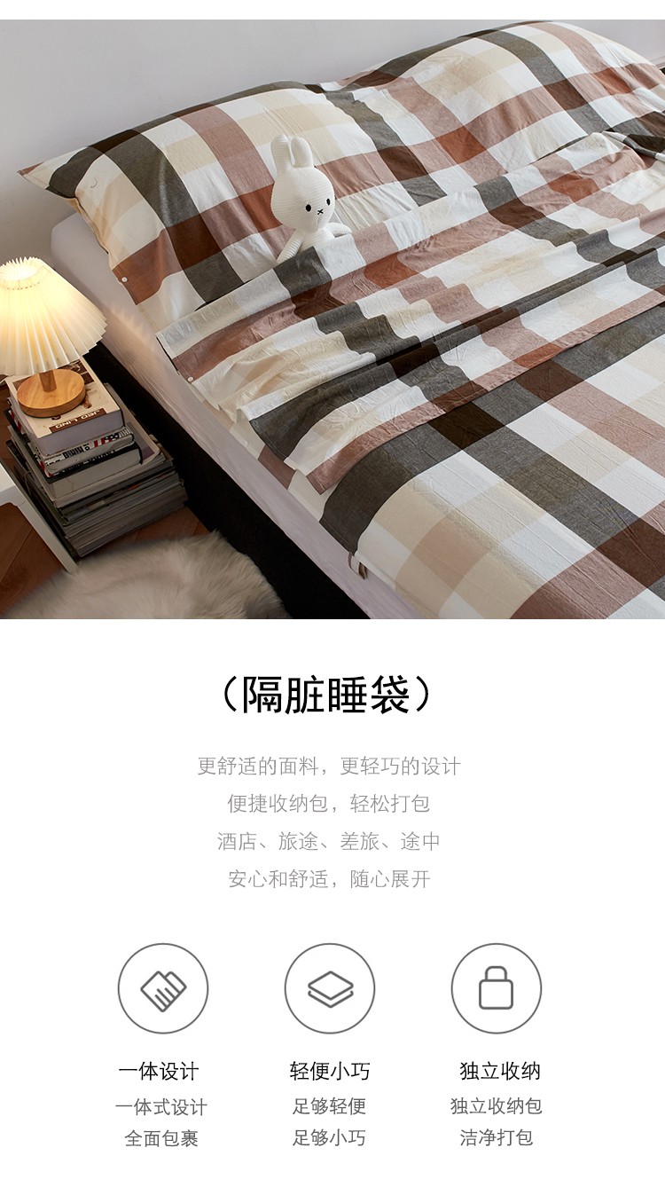 无印色织全棉水洗棉酒店隔脏睡袋便携式出差旅游行单双人床单被套