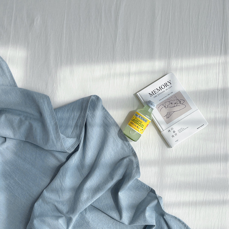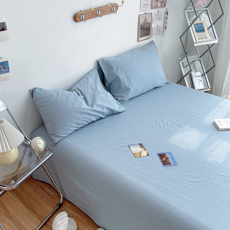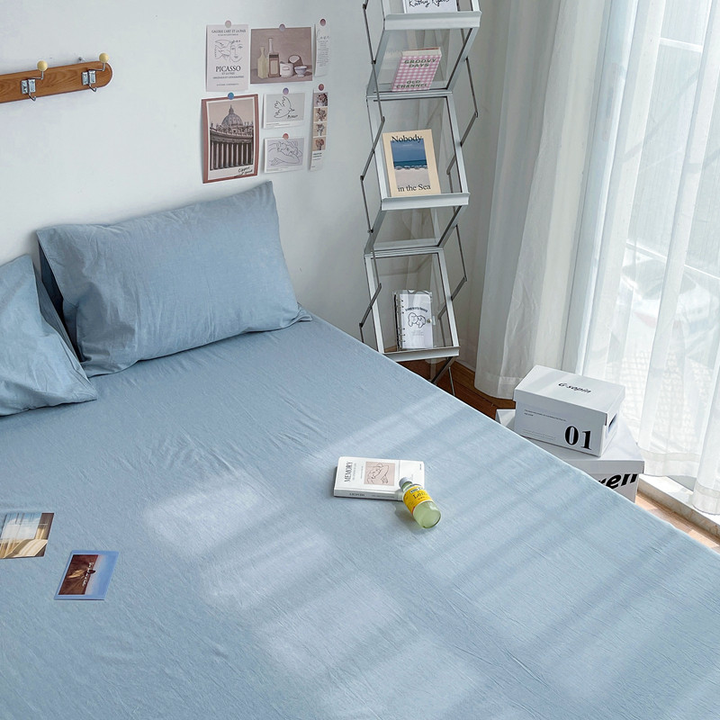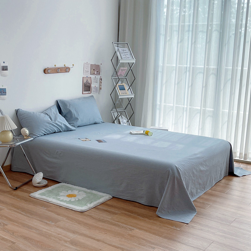 安莱生活 2021新款全棉水洗棉单床单 浅蓝