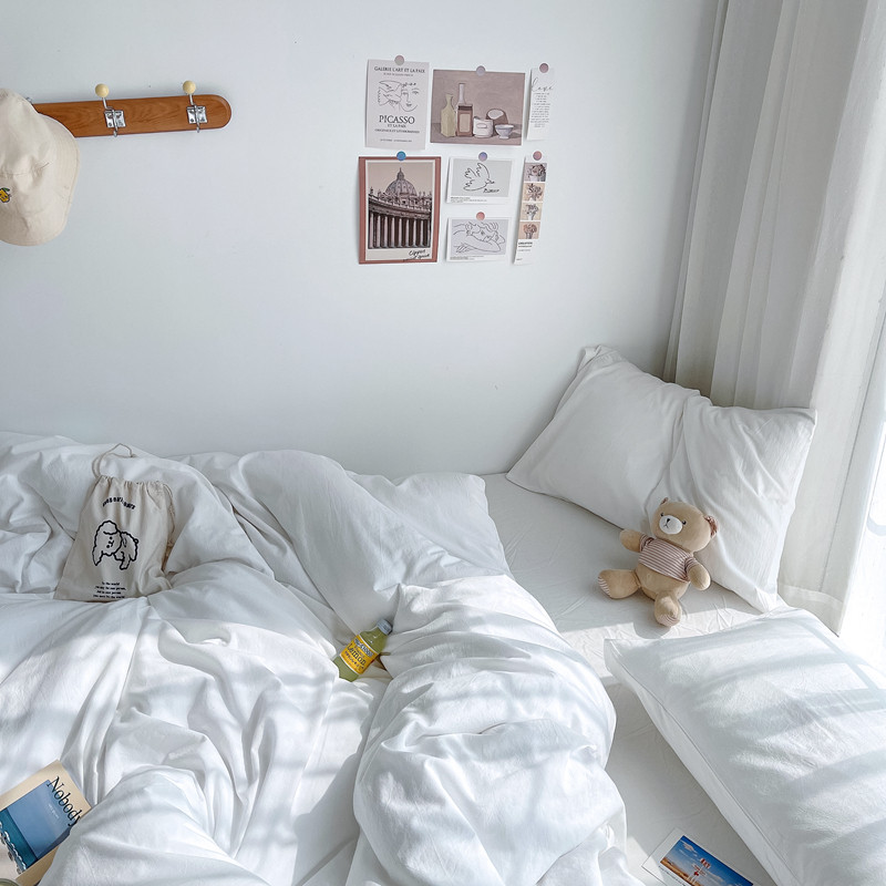 安莱生活 2021新款全棉水洗棉单被套 盐白