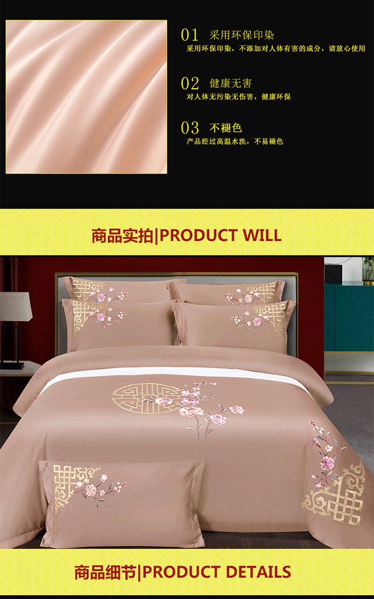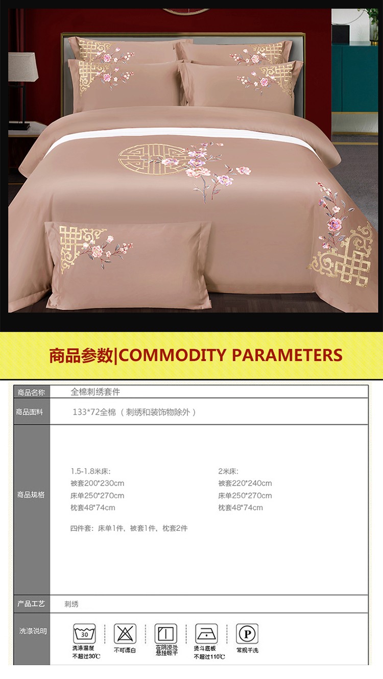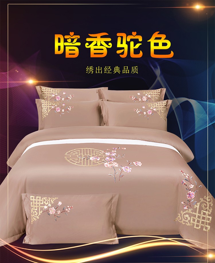 商品名称:婚庆四件套大红色刺绣花全棉纯棉结婚八色床上用品暗香 驼色