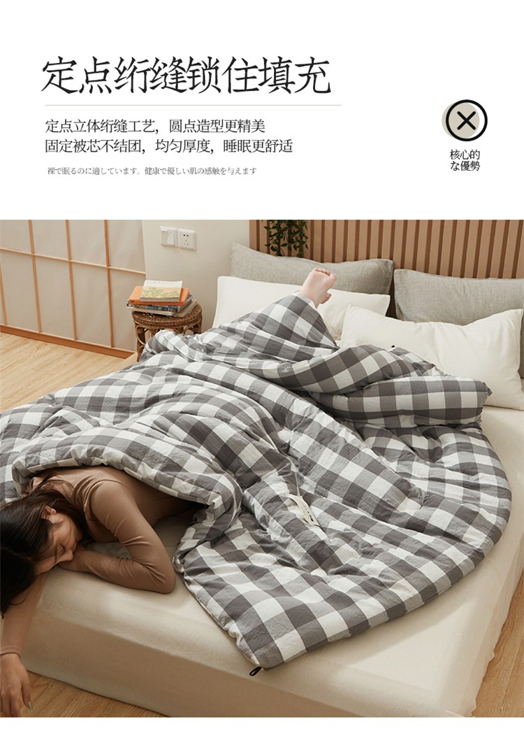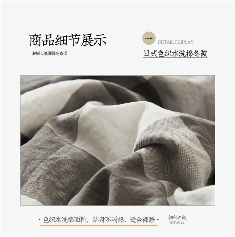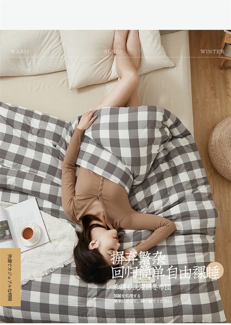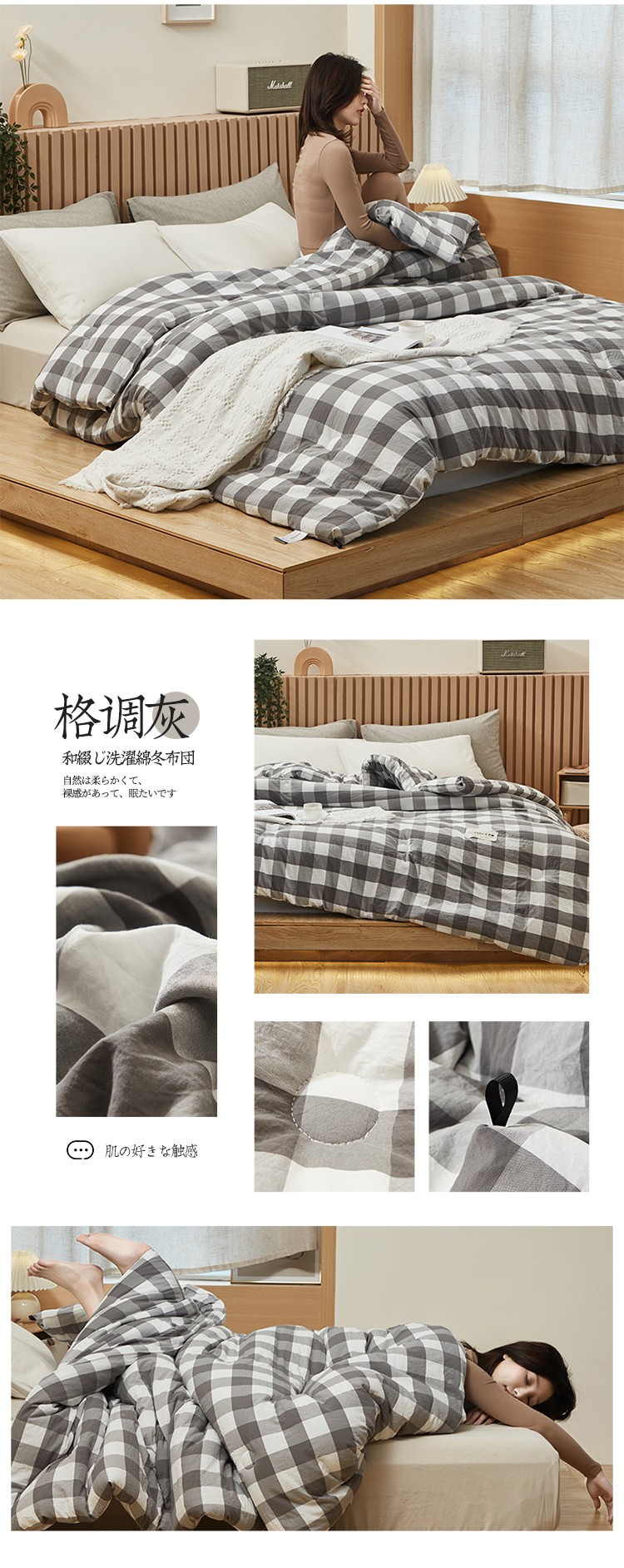 莱宁被业 2021新款日式色织水洗棉冬被 格调灰