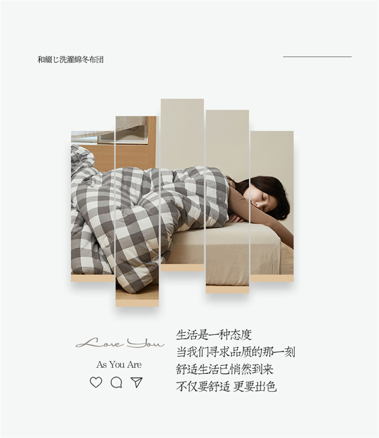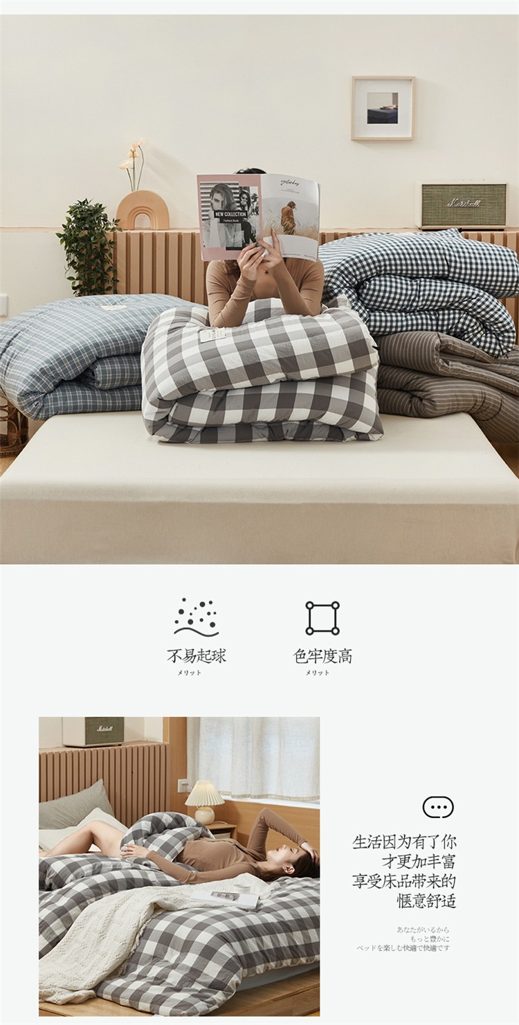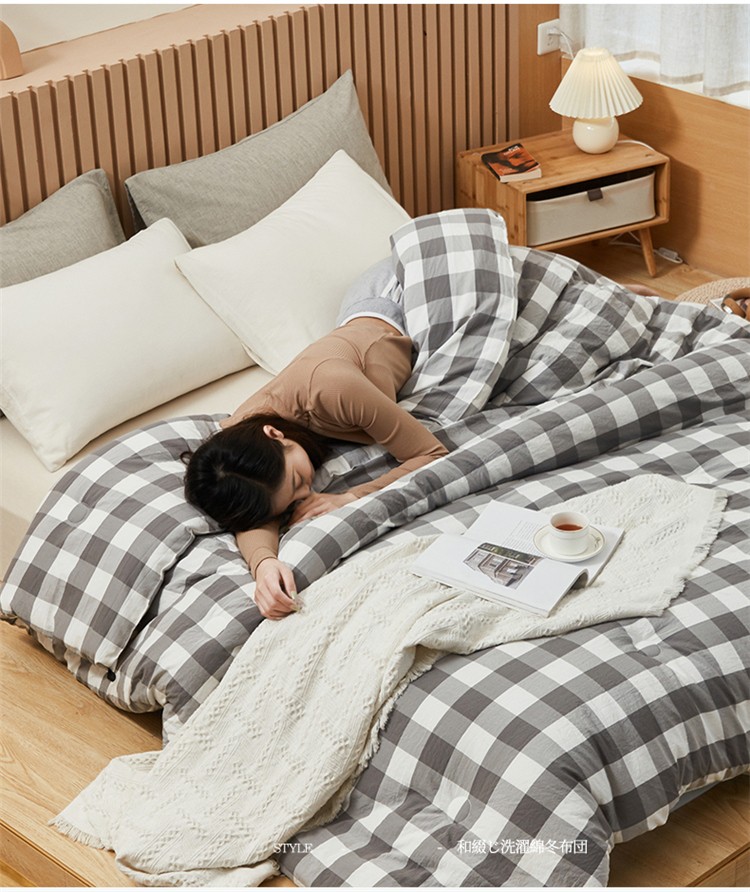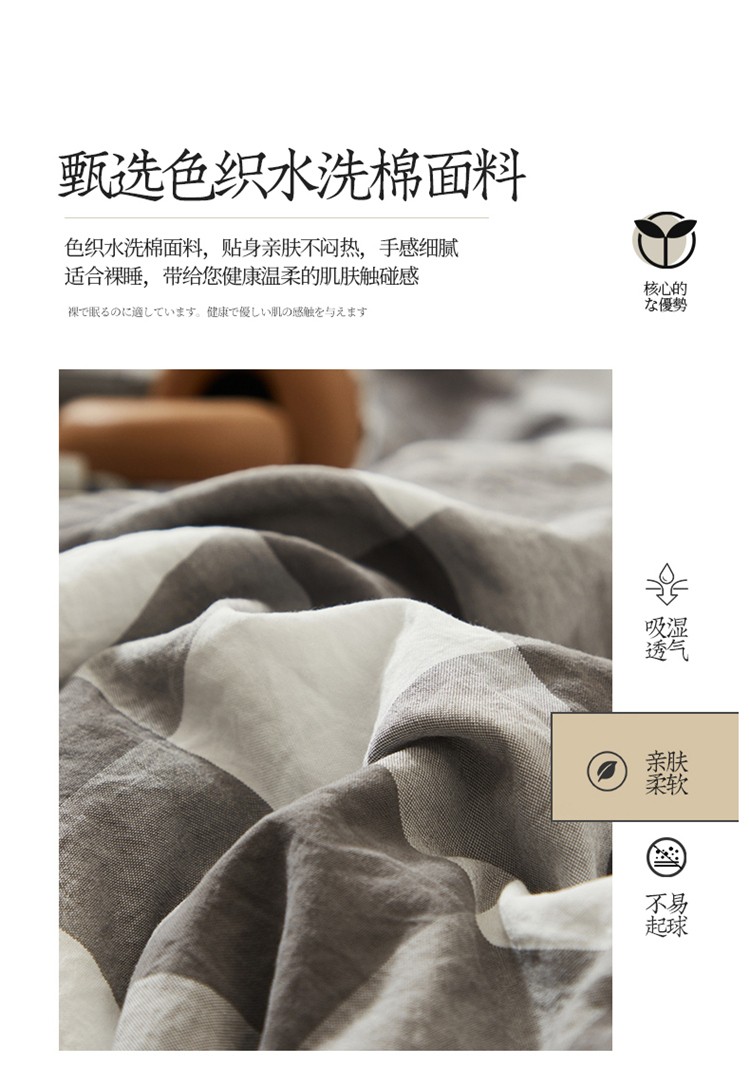 莱宁被业 2021新款日式色织水洗棉冬被 格调灰
