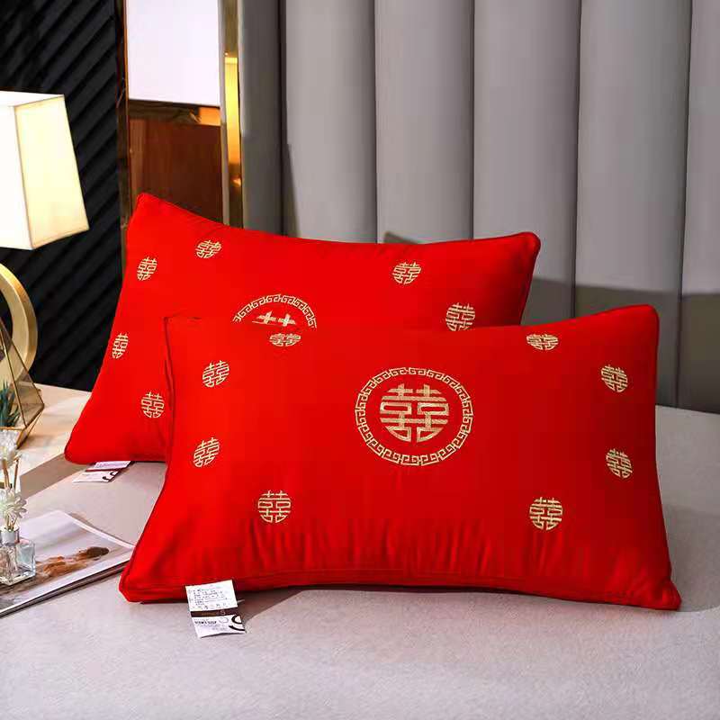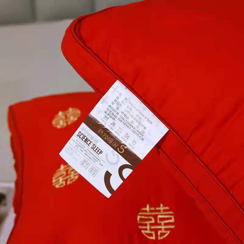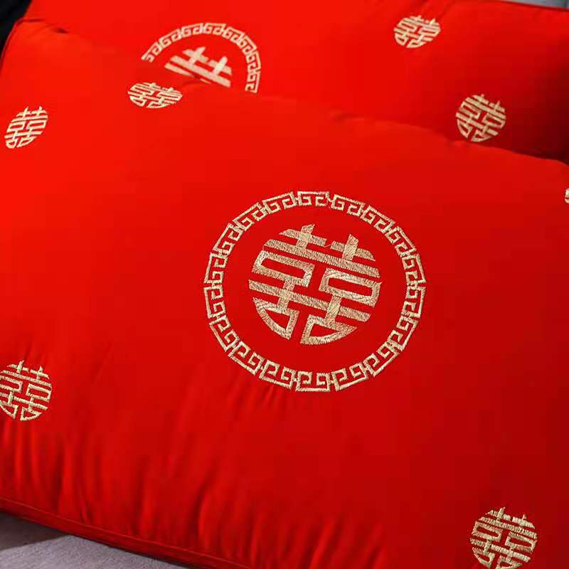 新丽佳家纺 2021新款全棉立体羽丝绒婚庆枕芯 红色