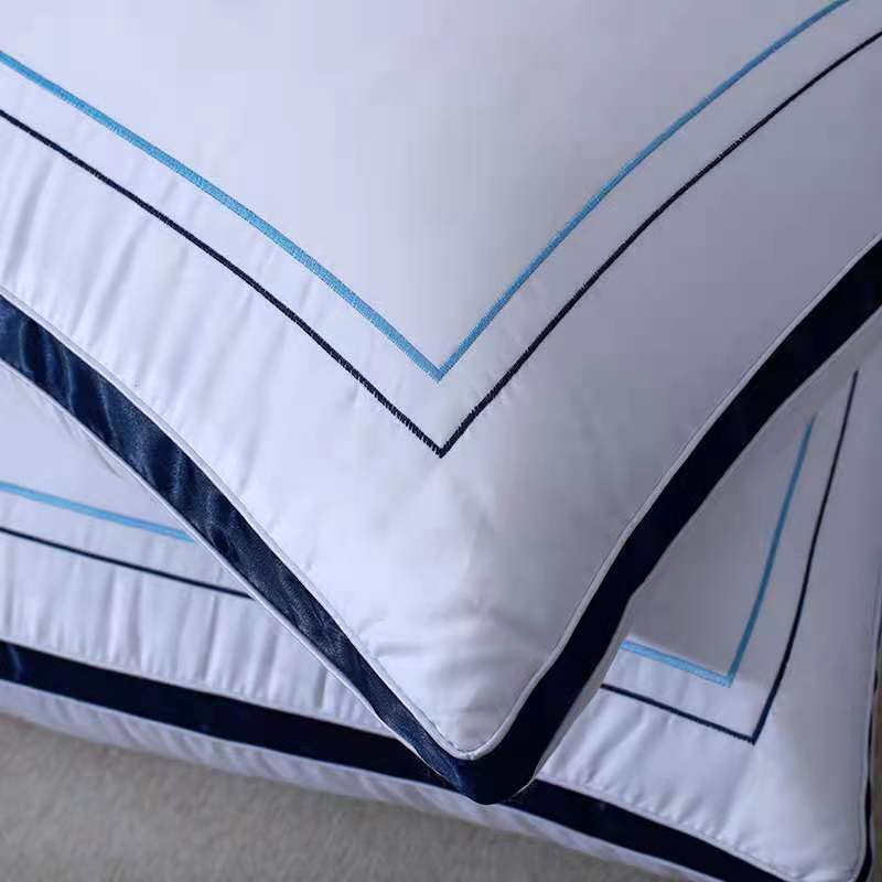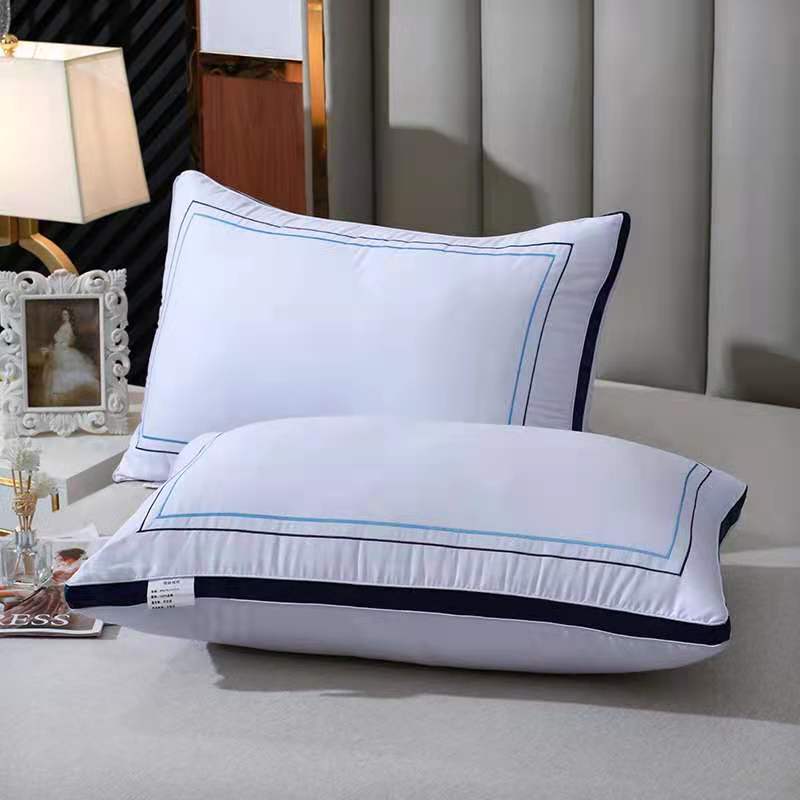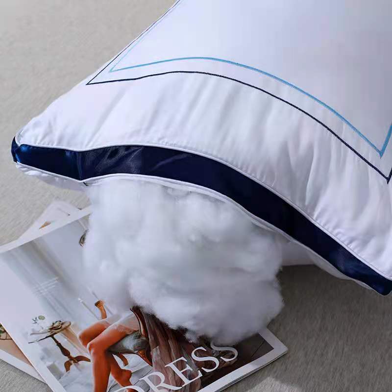 新丽佳家纺2021全棉立体羽丝绒枕头枕芯立体蓝边1200克