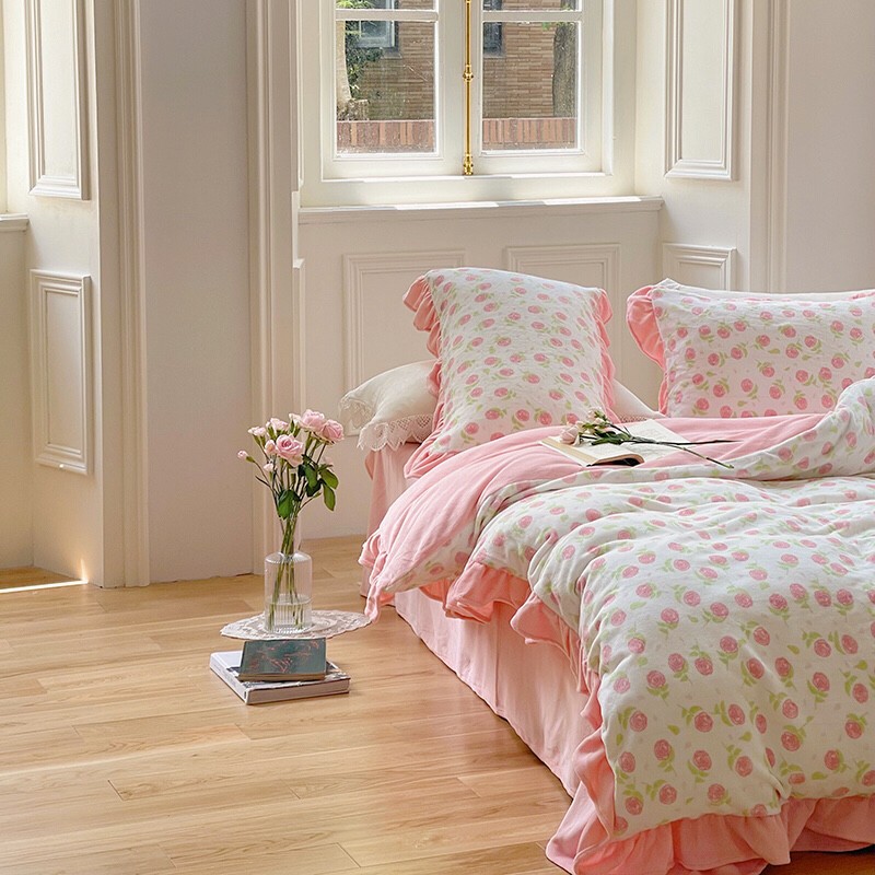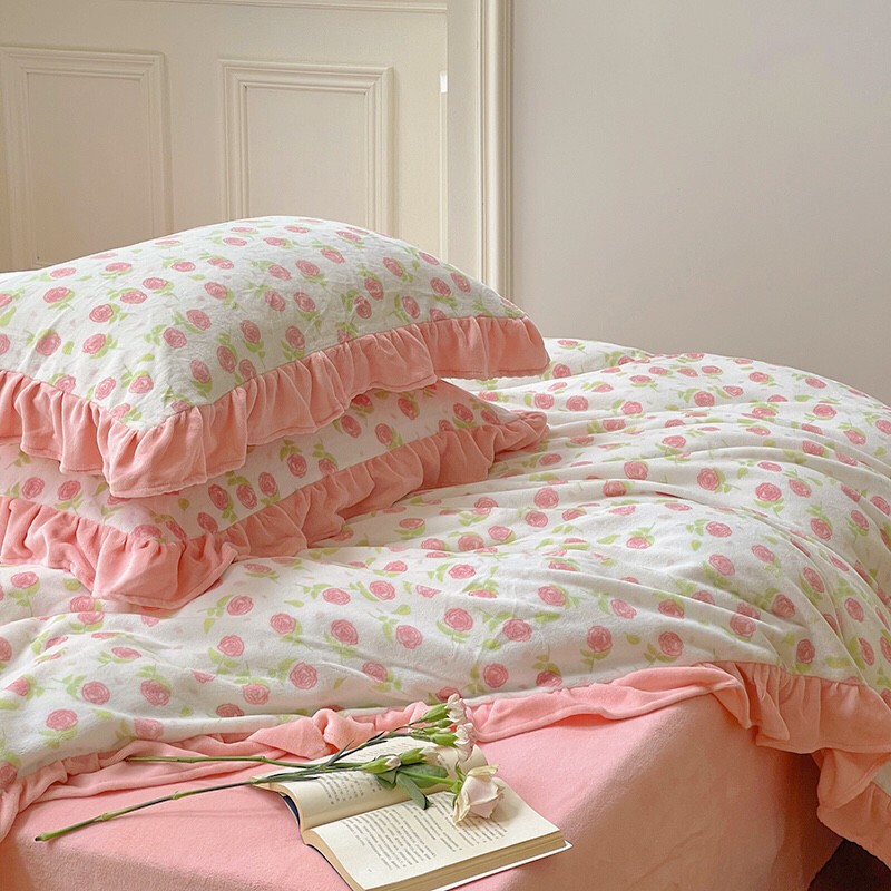 圆岛 2021新款法式浪漫牛奶绒四件套 贝拉粉