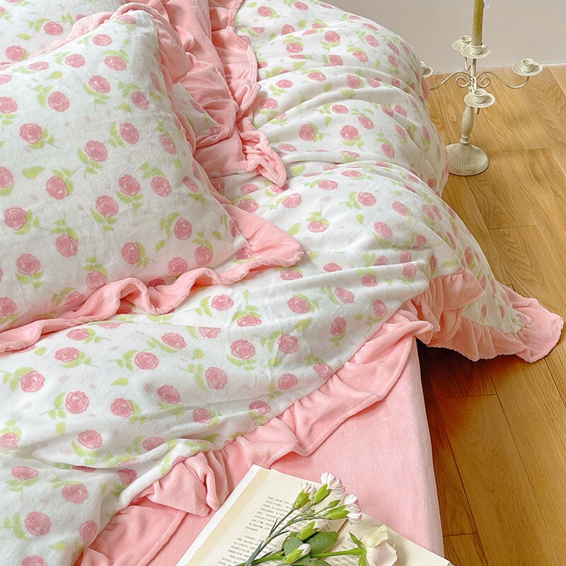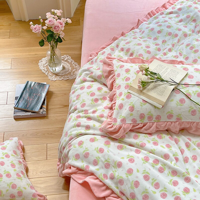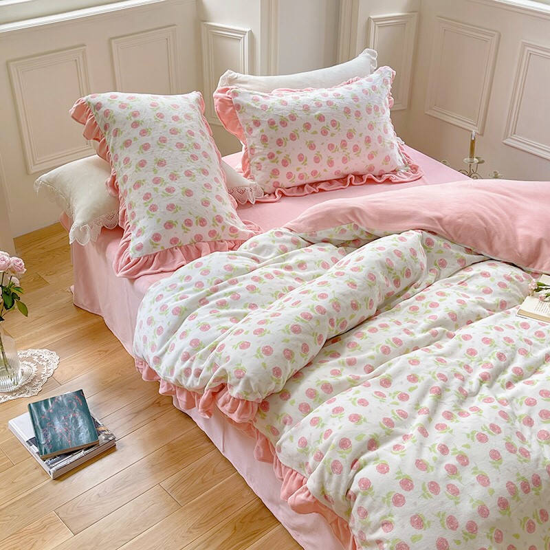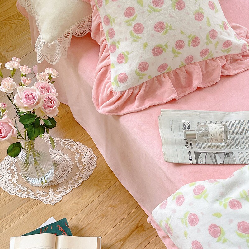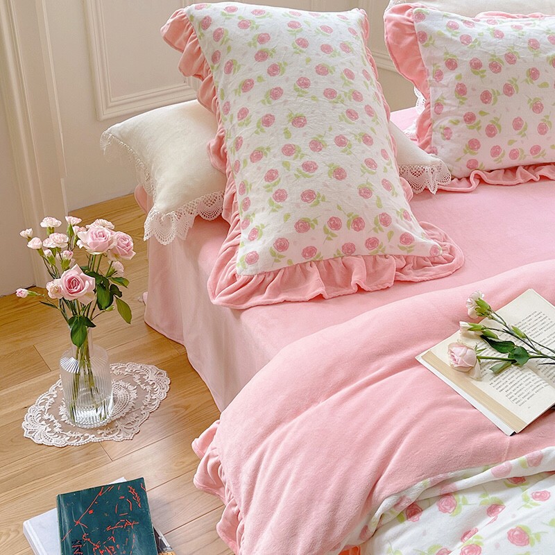 商品名称:圆岛 2021新款法式浪漫牛奶绒四件套 贝拉粉