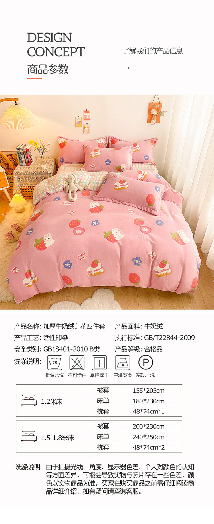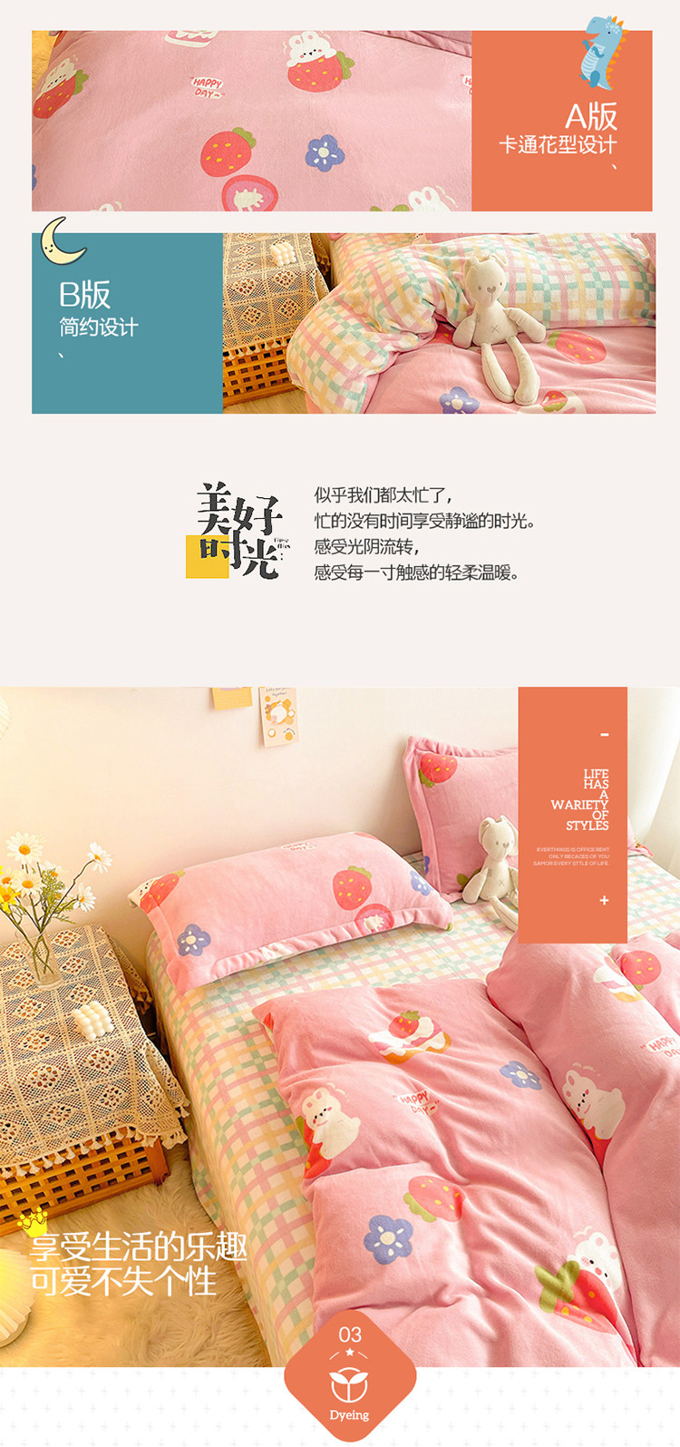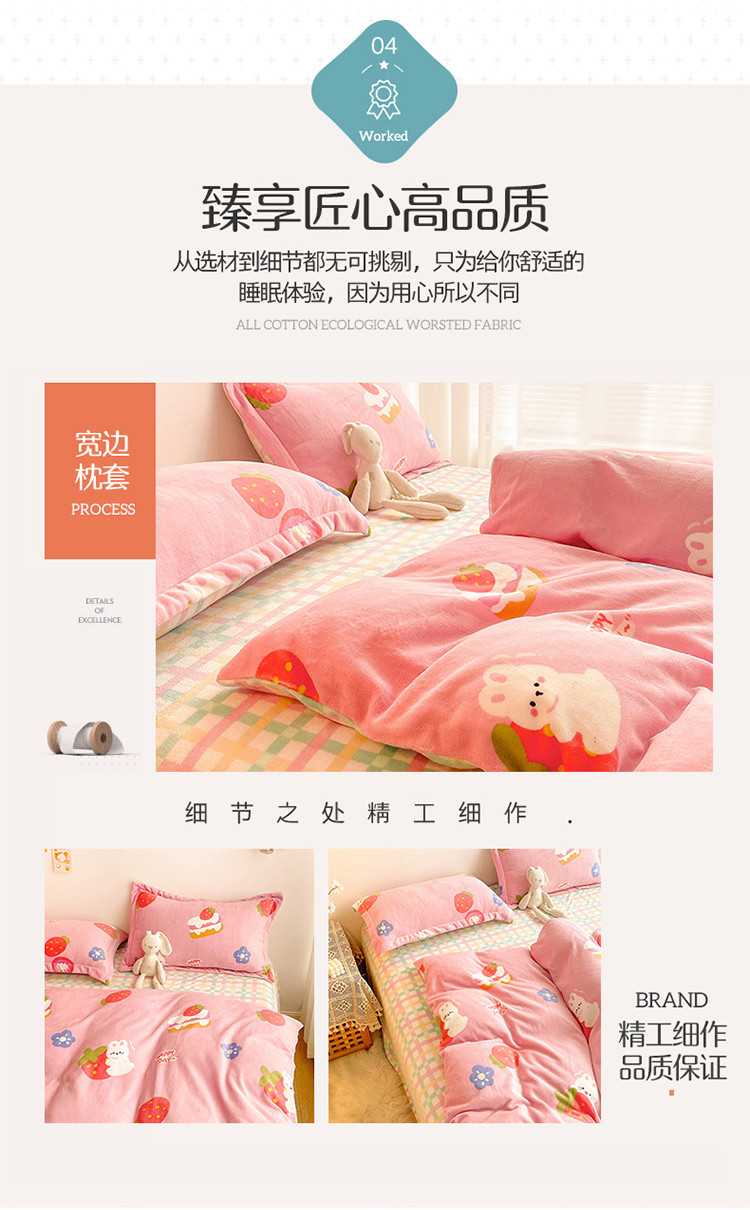 商品名称:沐棉 2021新款卡通牛奶绒四件套新拍 草莓小兔