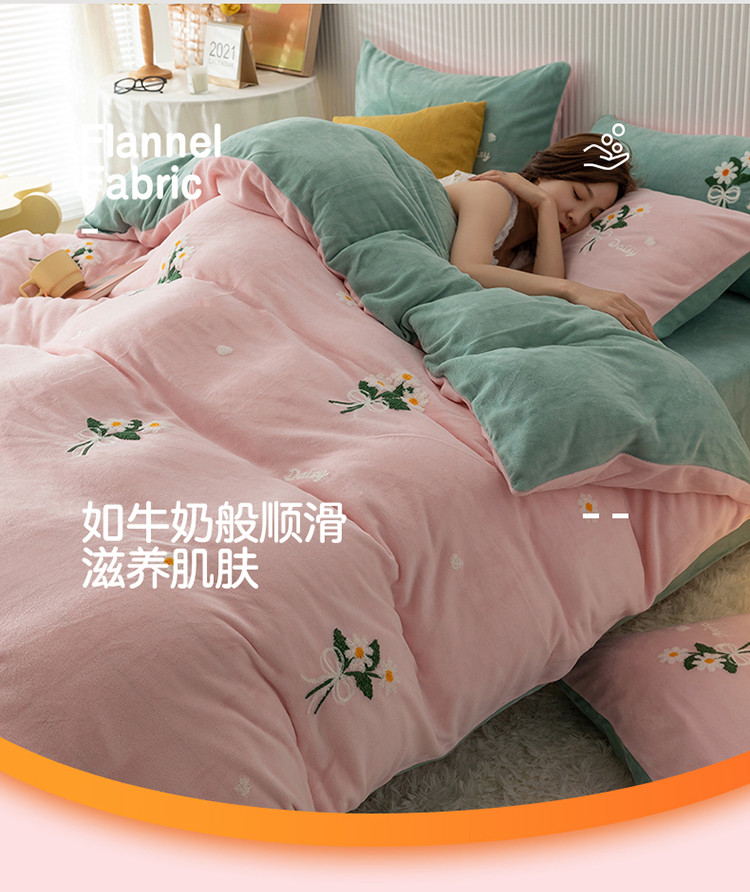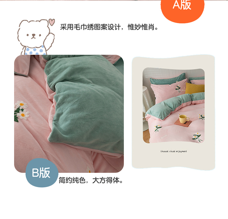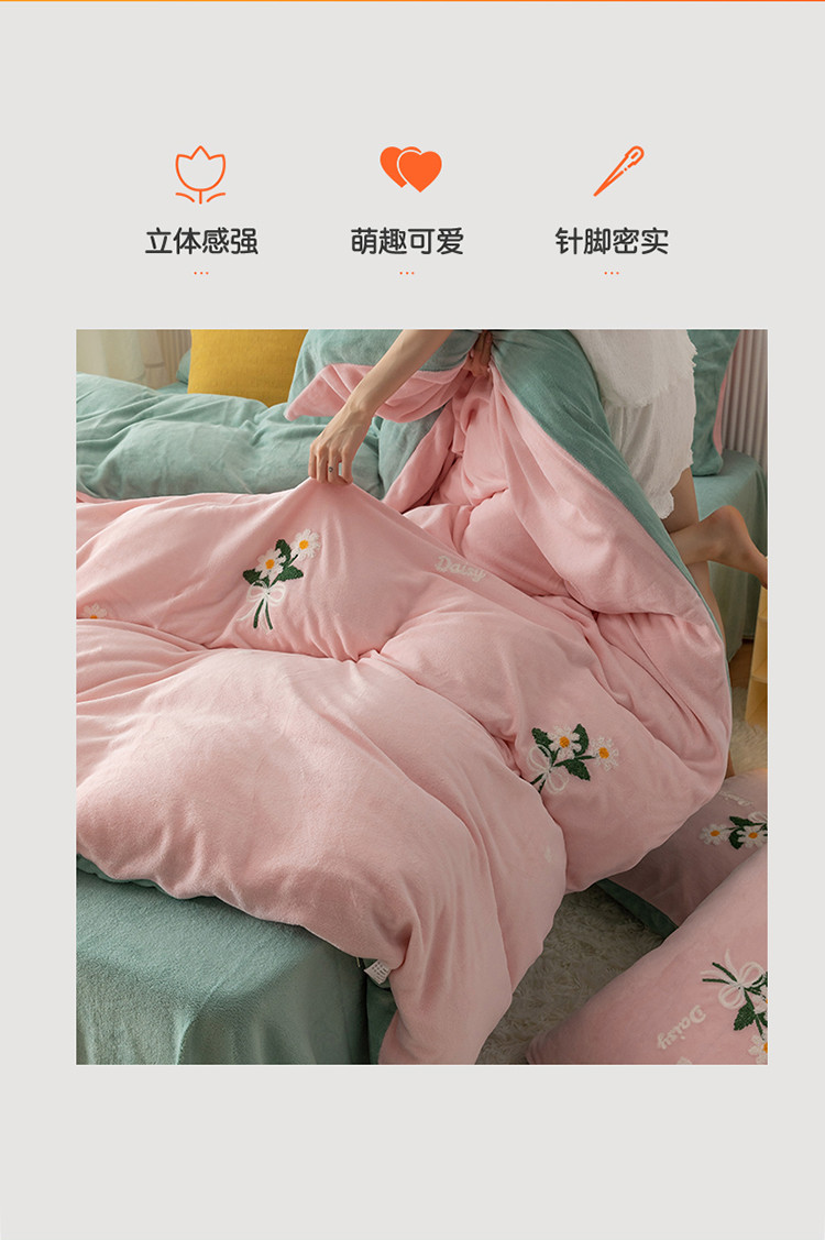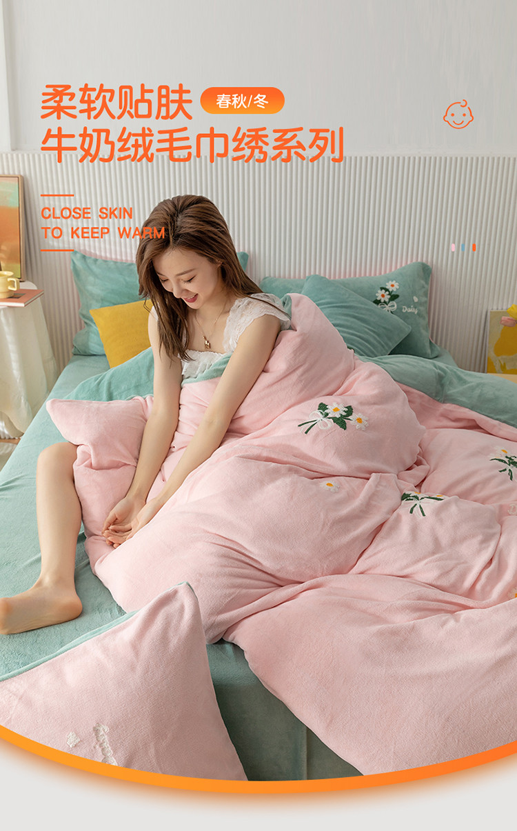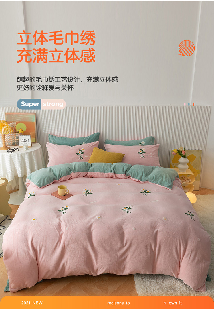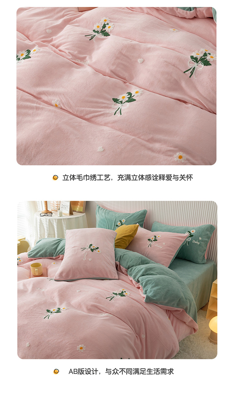 商品名称:兄弟坊 2021牛奶绒毛巾绣四件套 雏菊-粉