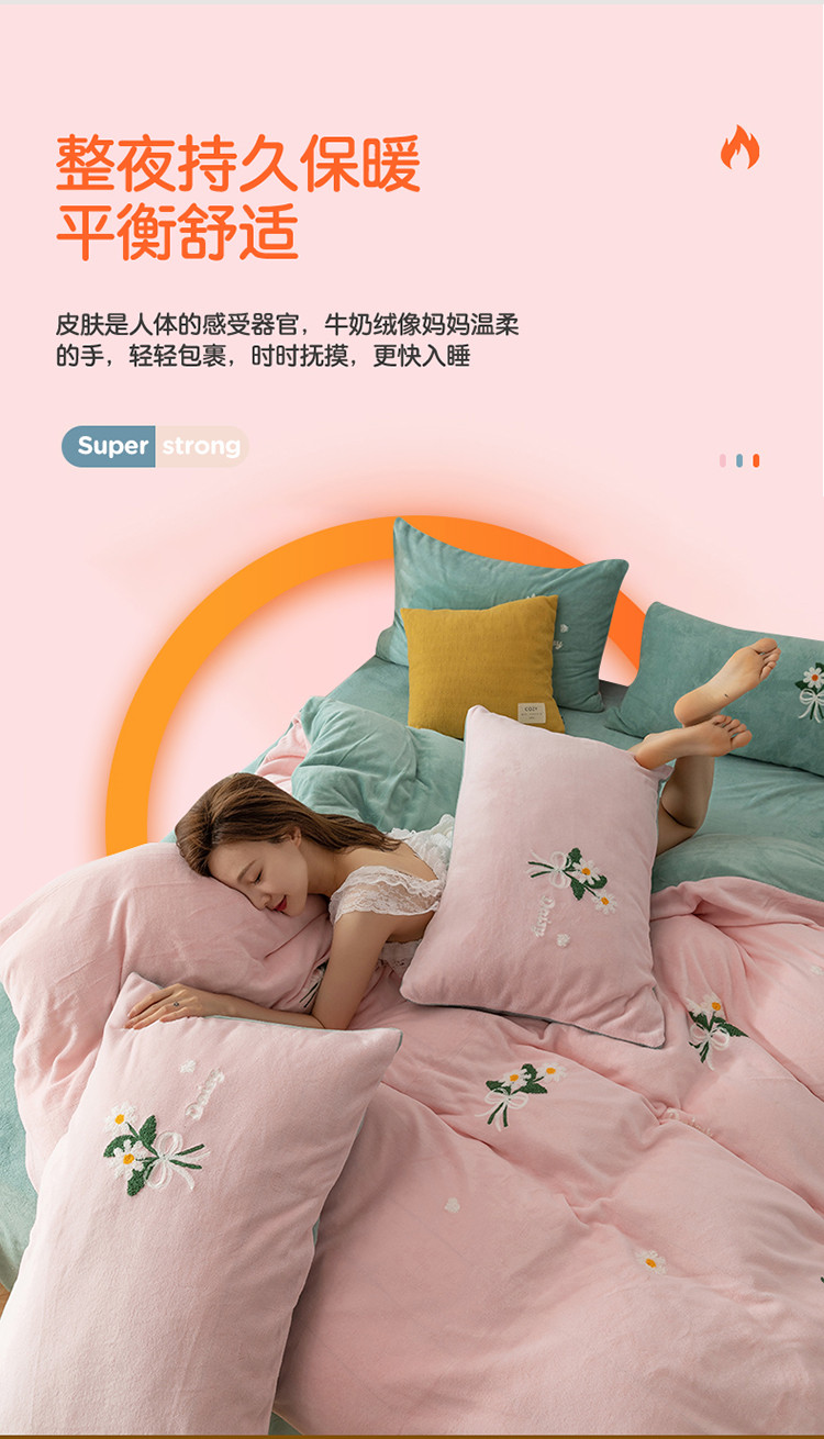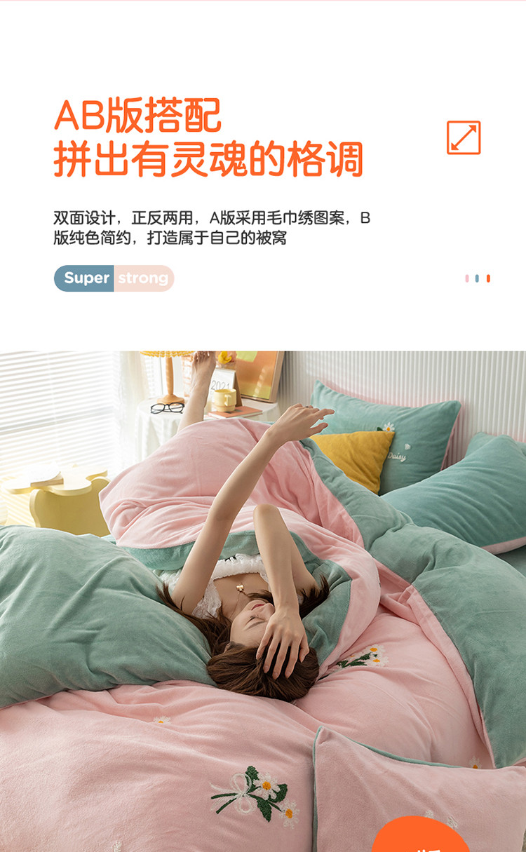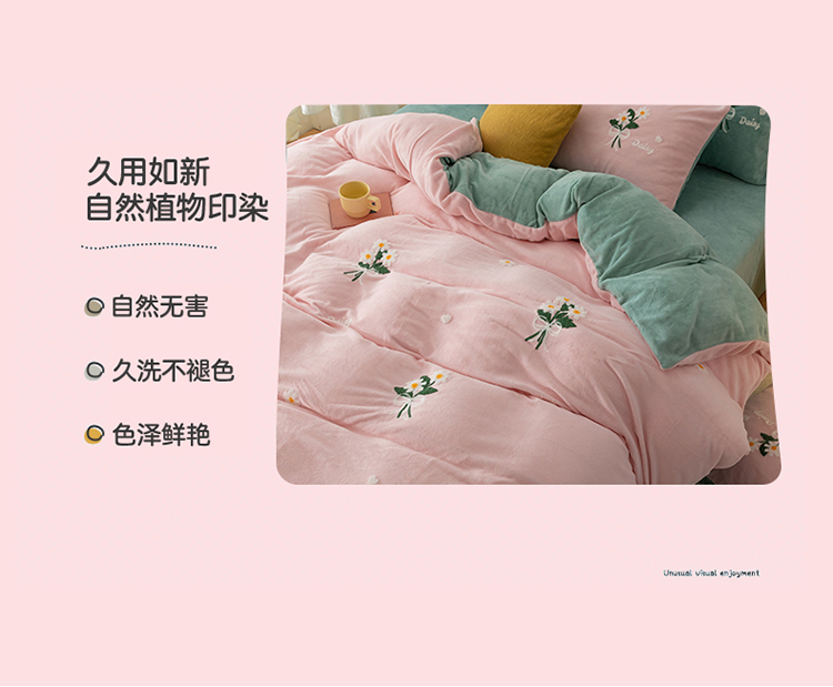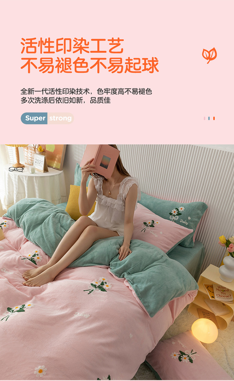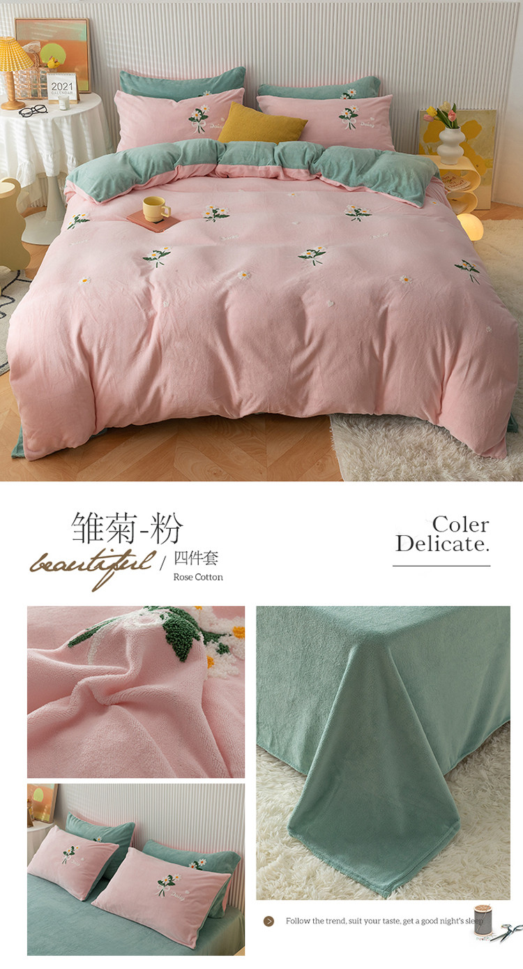 商品名称:兄弟坊 2021牛奶绒毛巾绣四件套 雏菊-粉