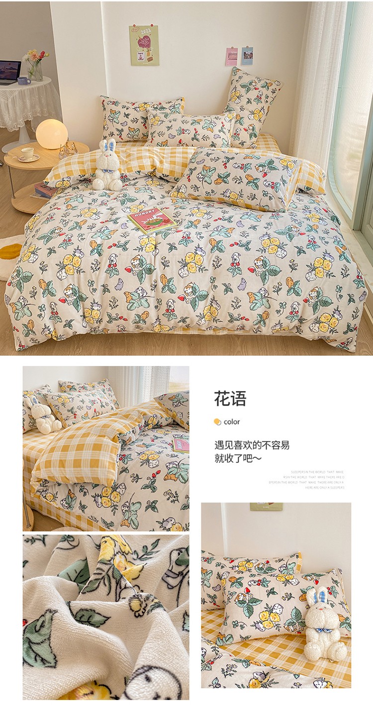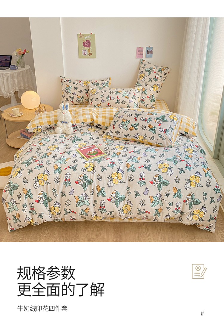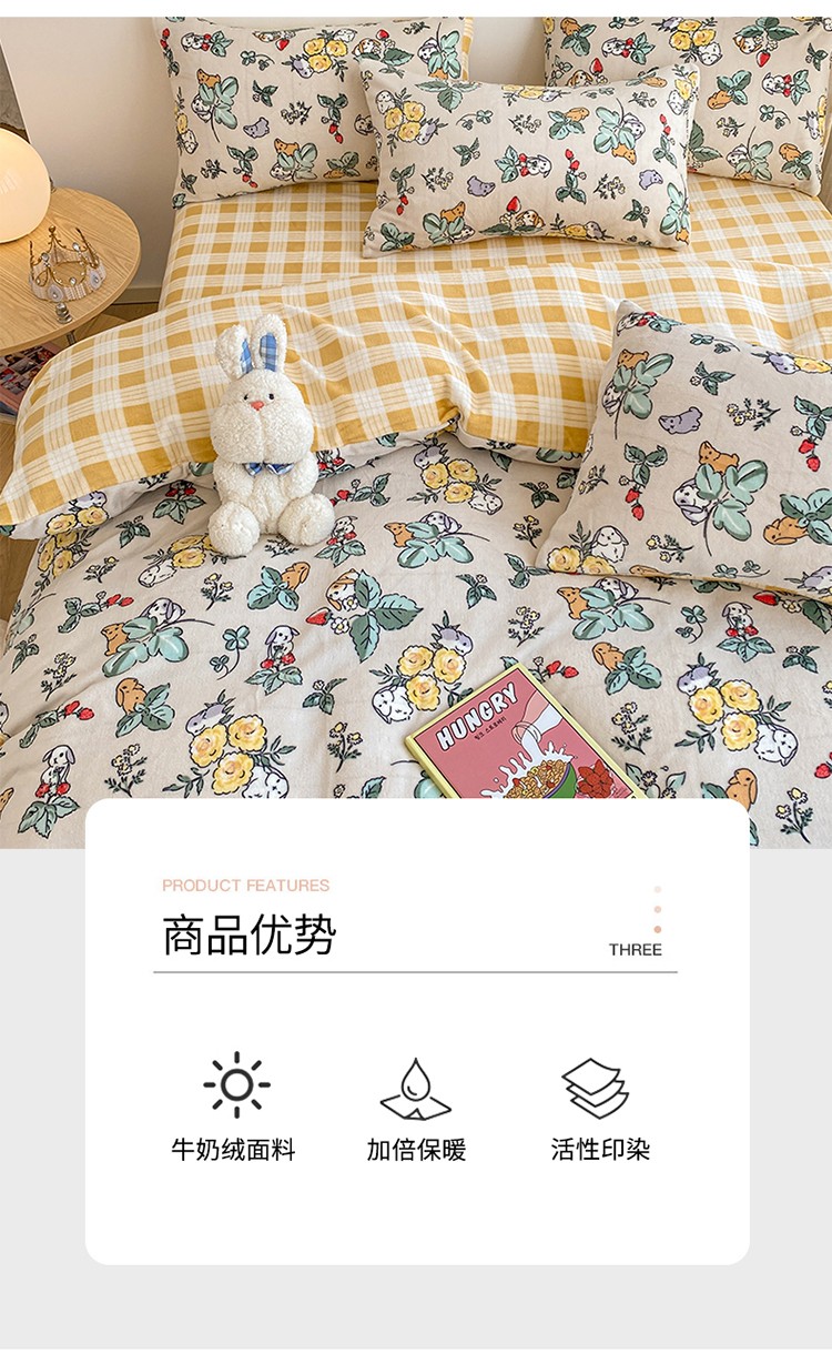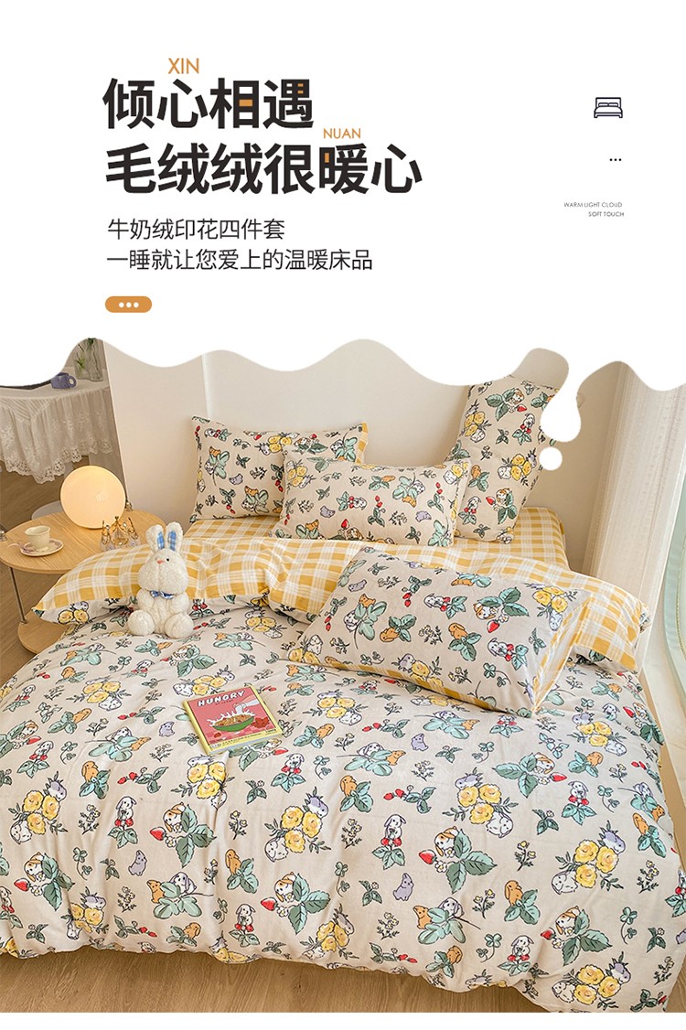 商品名称:雅居纺 2022新款印花牛奶绒四件套 花语