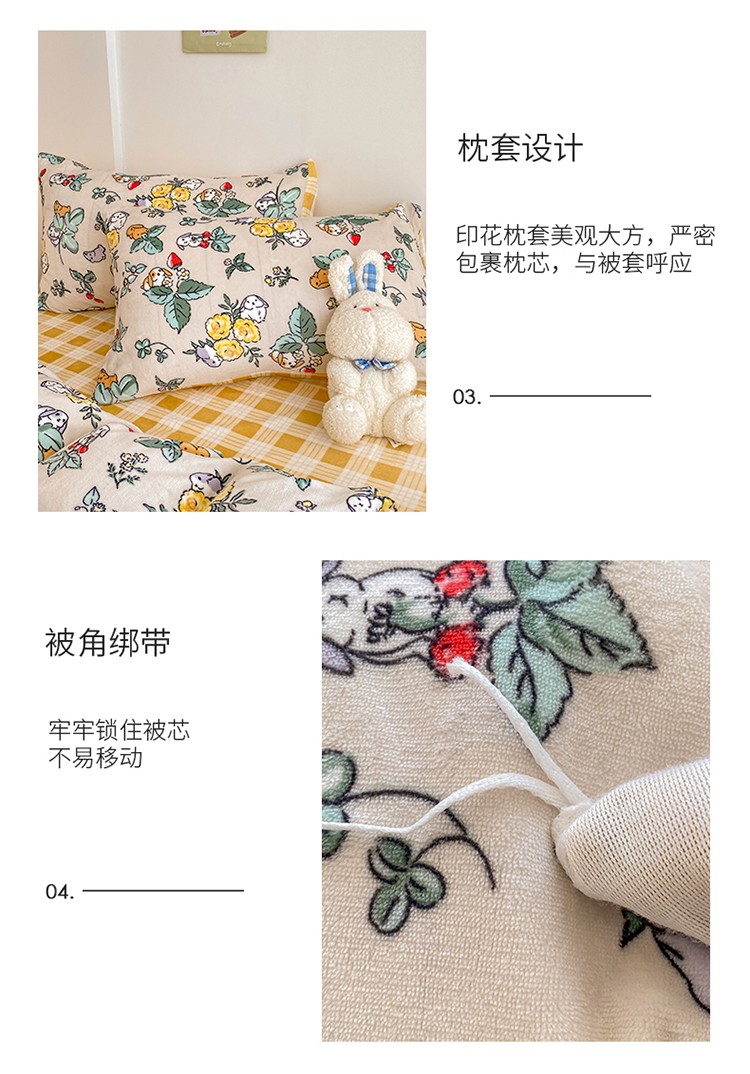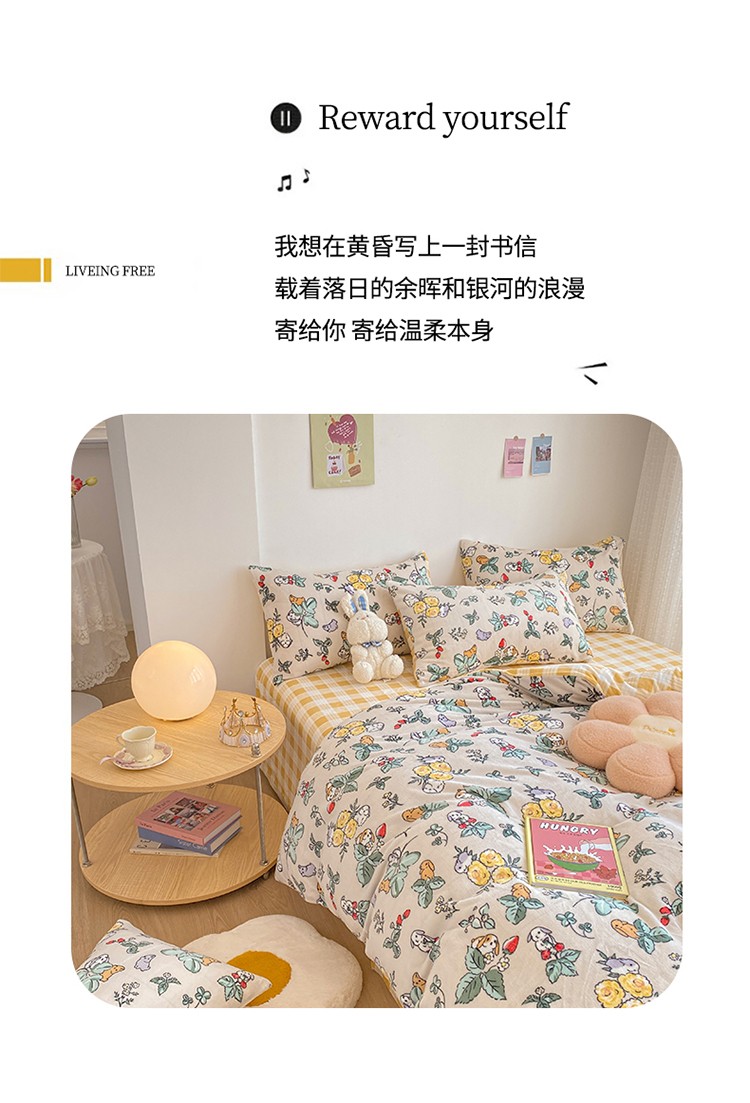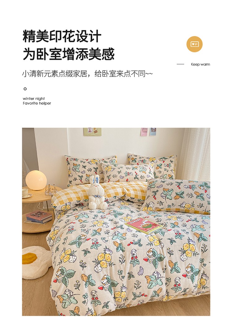 雅居纺 2022新款印花牛奶绒四件套 花语