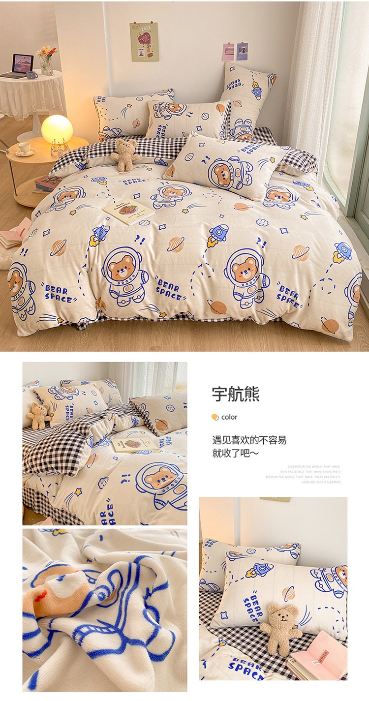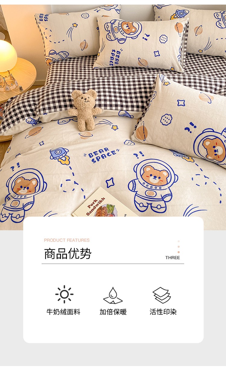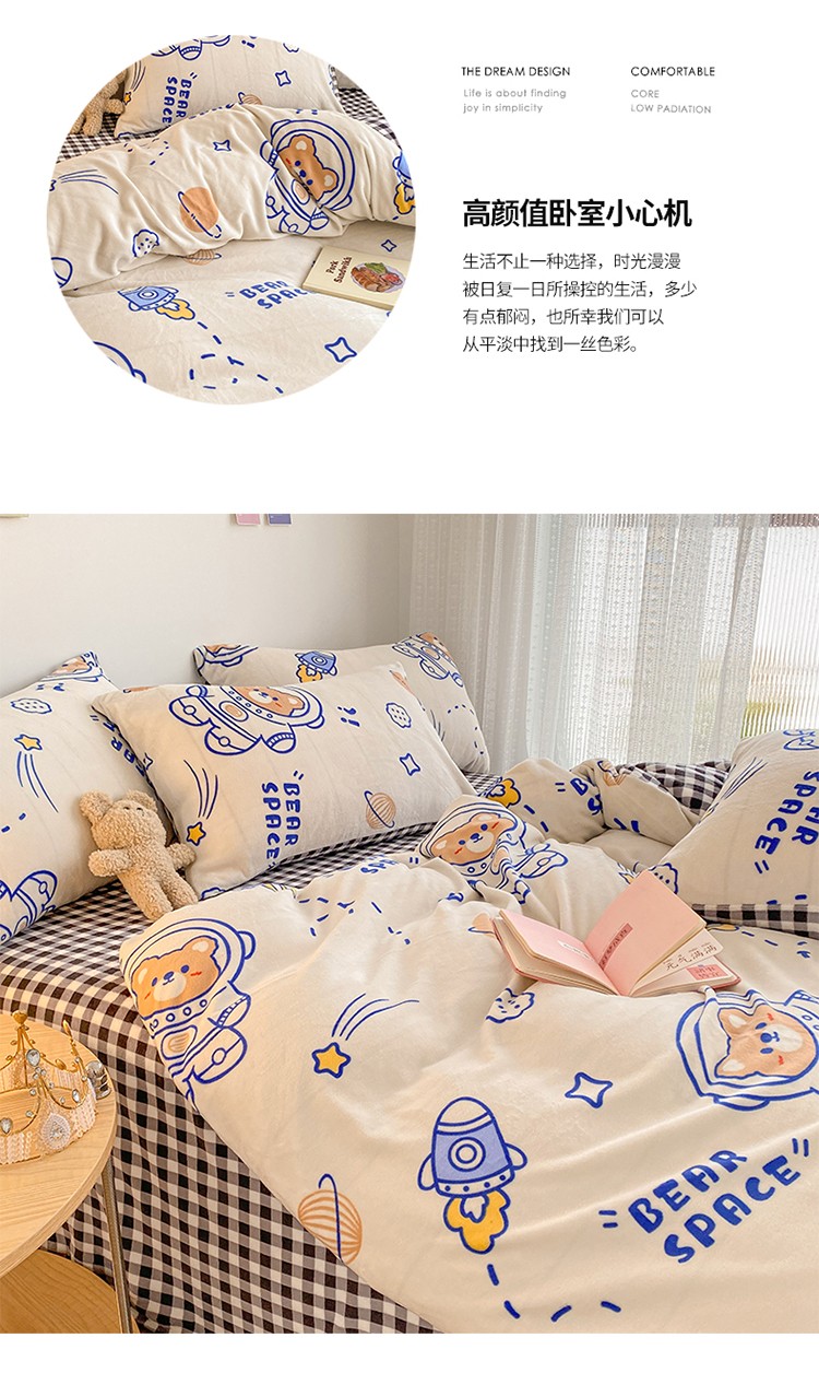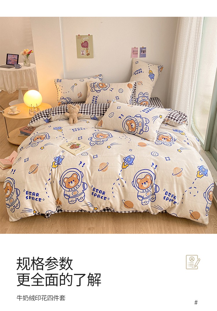 商品名称:雅居纺 2022新款印花牛奶绒四件套 宇航熊