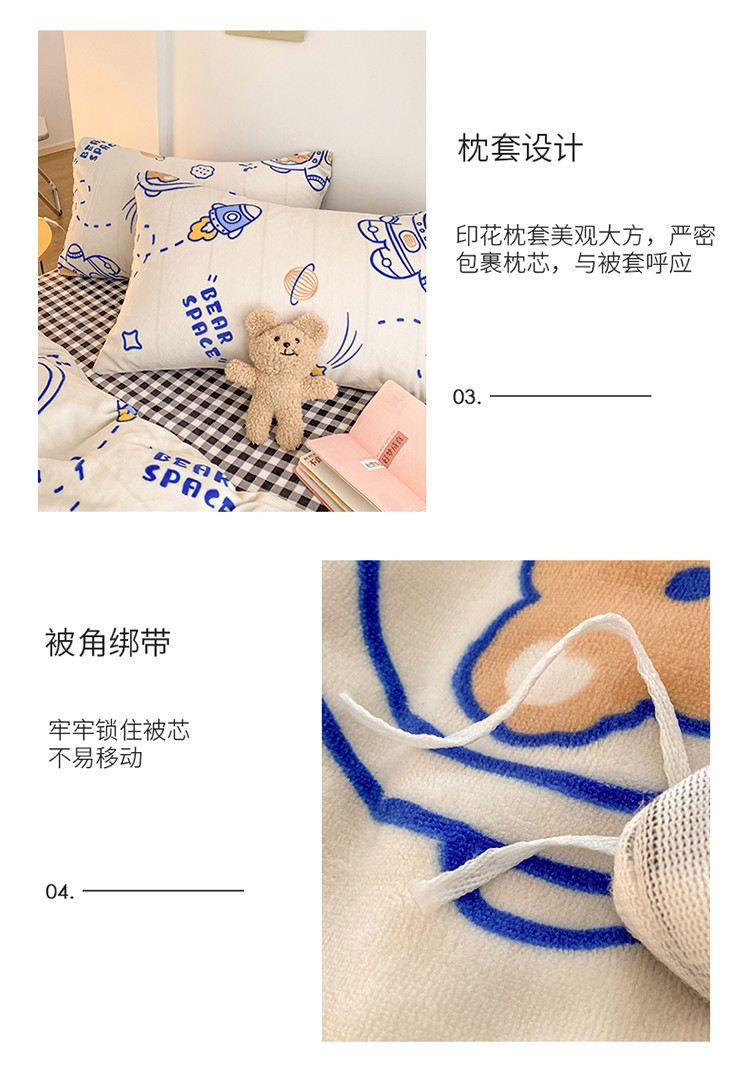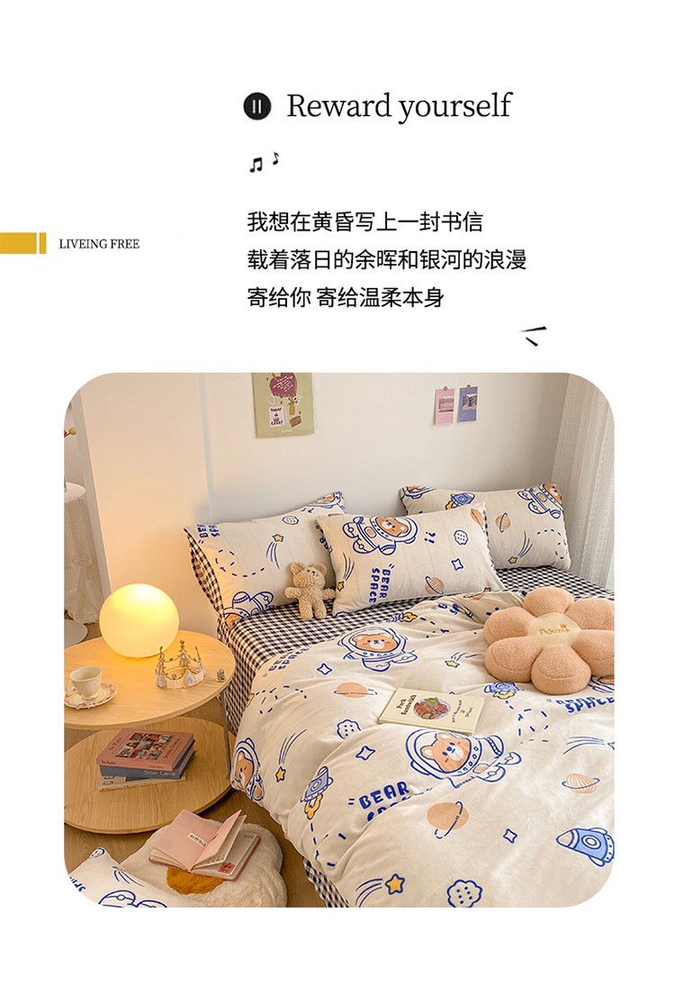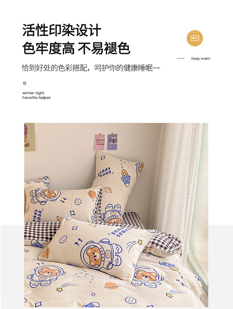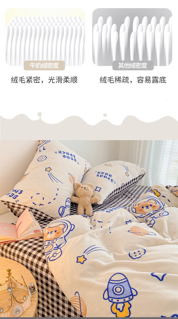 商品名称:雅居纺 2022新款印花牛奶绒四件套 宇航熊