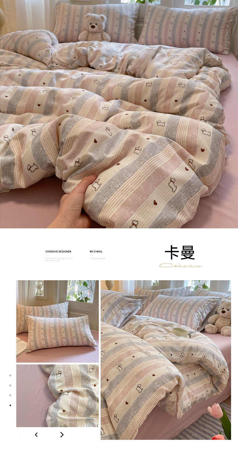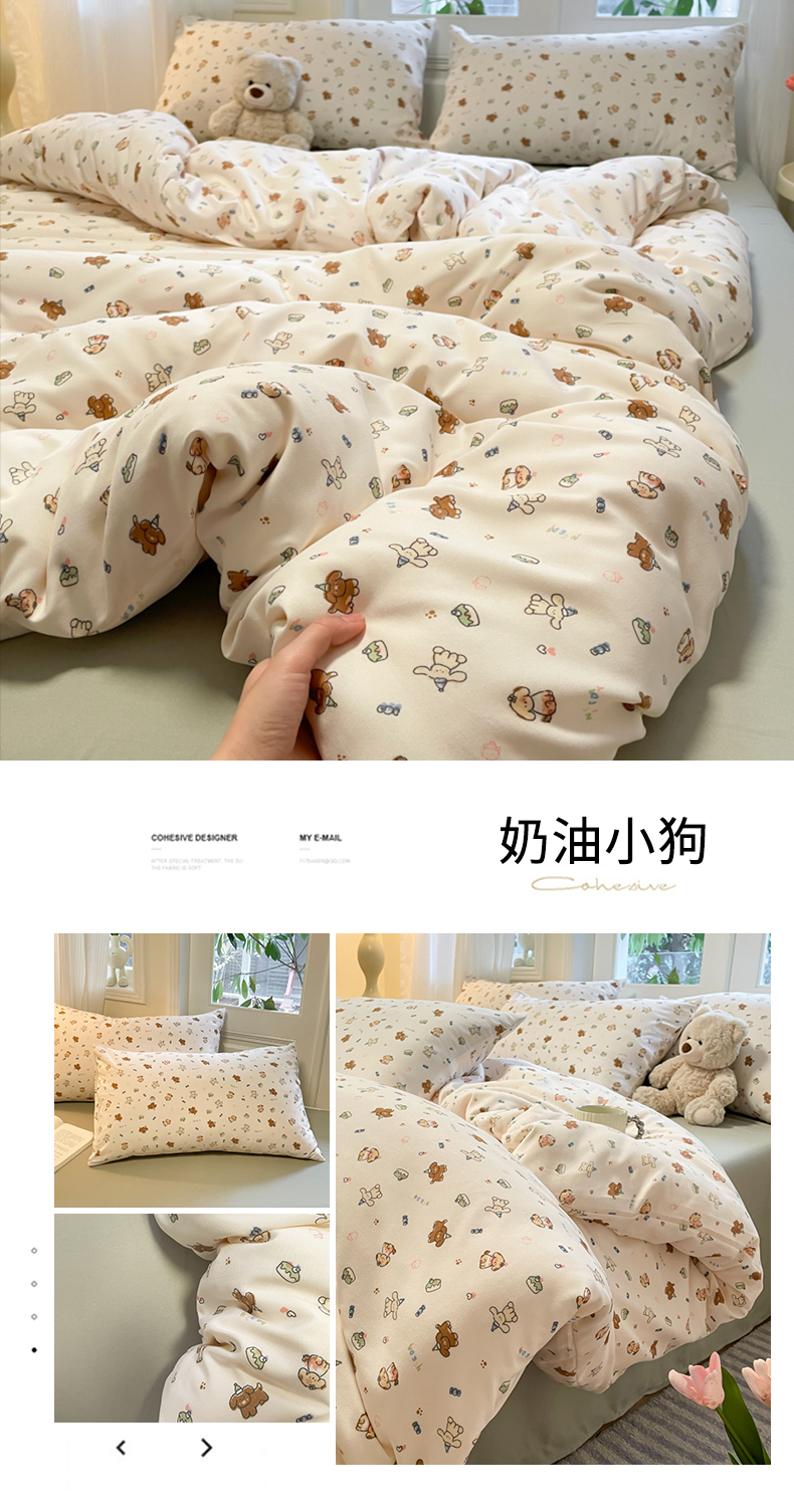 (总)玉海棠家纺 2025新款A版三层纱B版牛奶绒四件套系列,动物团团,粉黛,复古修狗,花丛点点猫,花间兔,碱水结,莫奈-咖,沐风,南瓜派,葡萄腊肠狗,糖豆腊肠狗,小花点点,撄桃蝴蝶,雨爱,紫萱