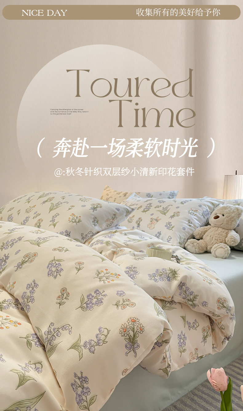 (总)玉海棠家纺 2025新款云感提花双层纱印花系列四件套-场景二,浅春,蓝风铃,蓝色梦境,浅夏,清欢,十里桃花,甜心女孩,紫薰