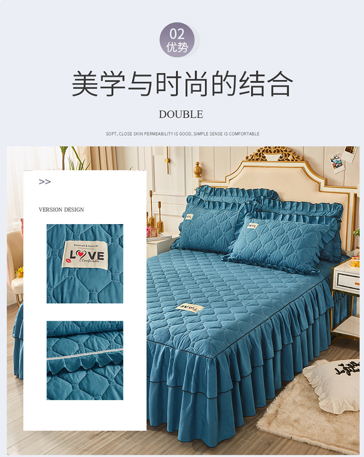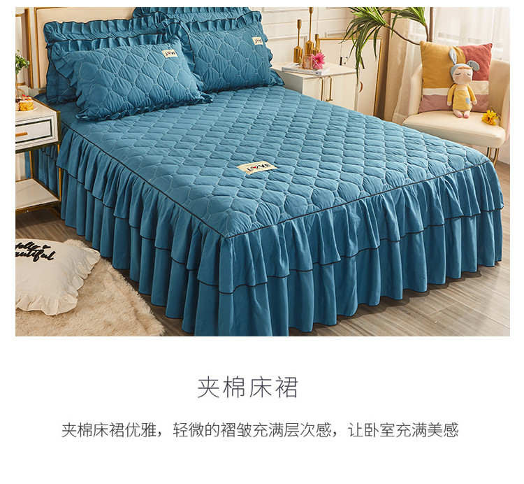 (总)艾裙海 2025新款90克磨毛夹棉绗缝床裙,粉色,大红色,米白色,深灰色,紫色,藏青色,宝蓝色,浅灰色,粉玉色,豆沙红