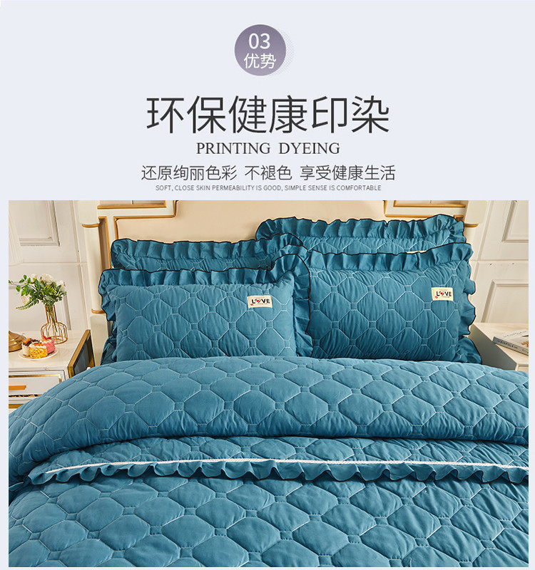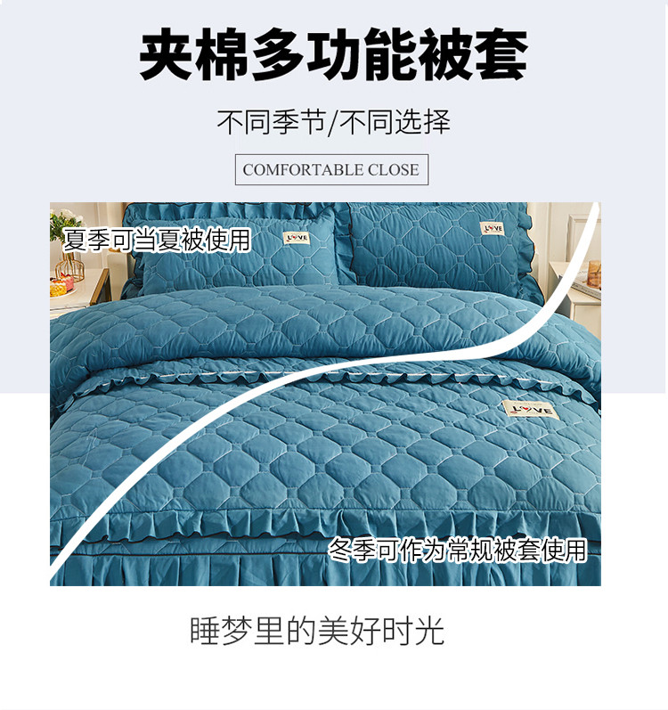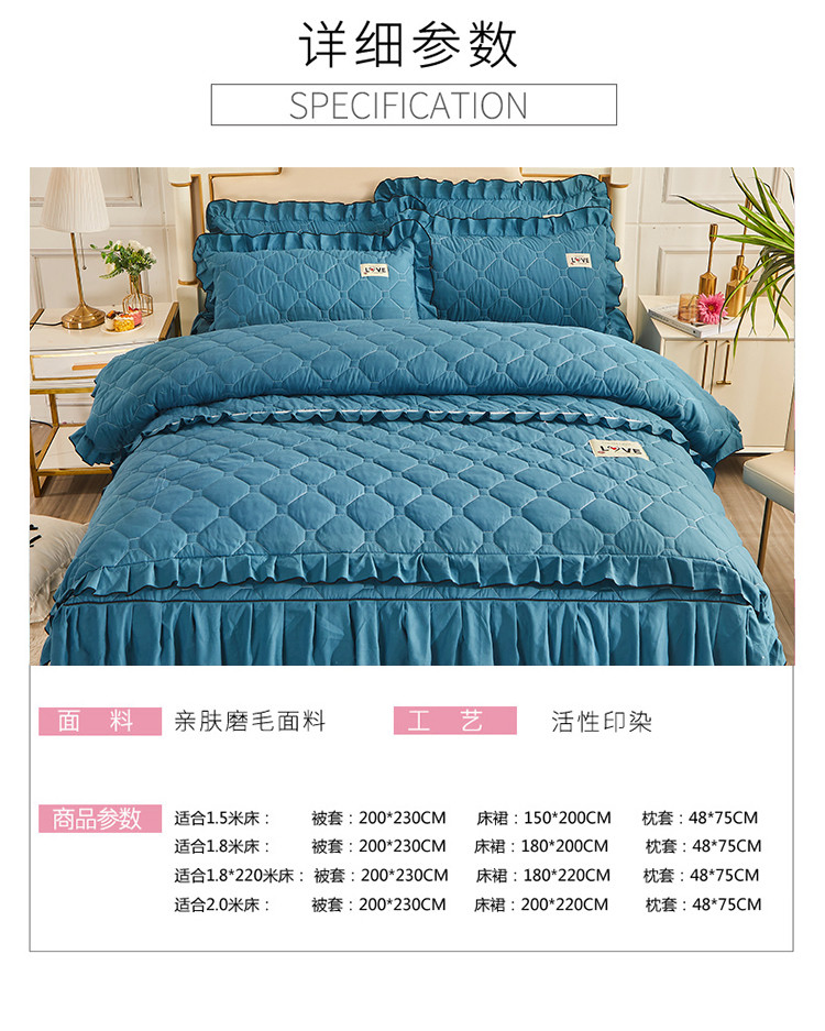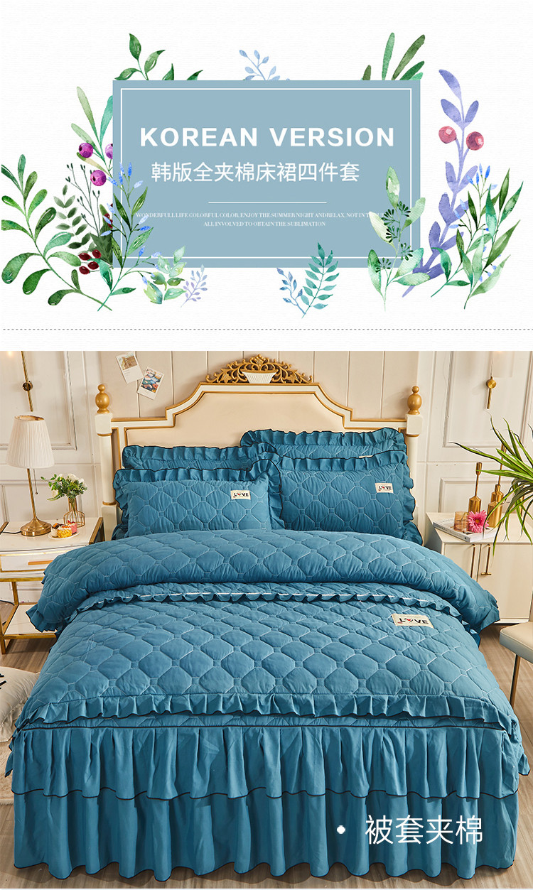 艾裙海 2025新款床裙款全夹棉四件套 宝蓝