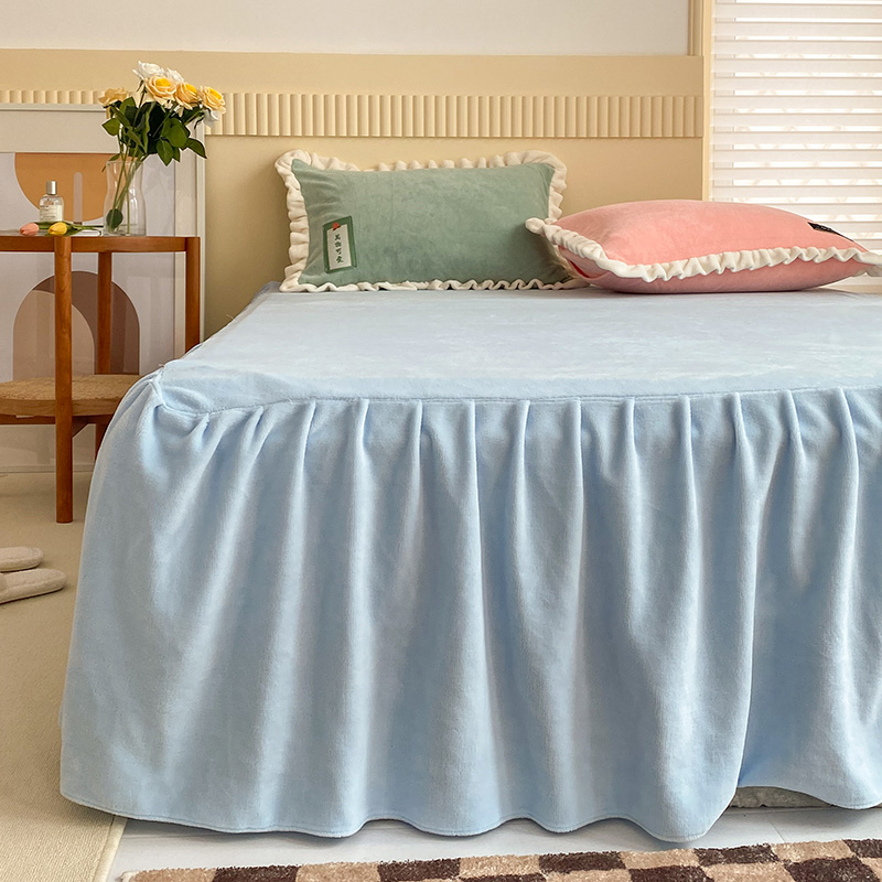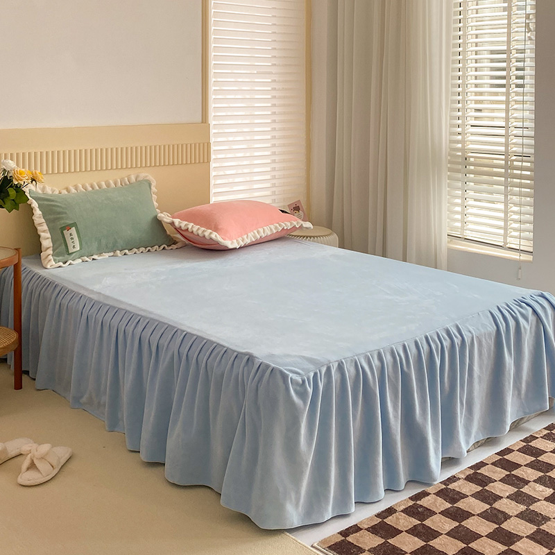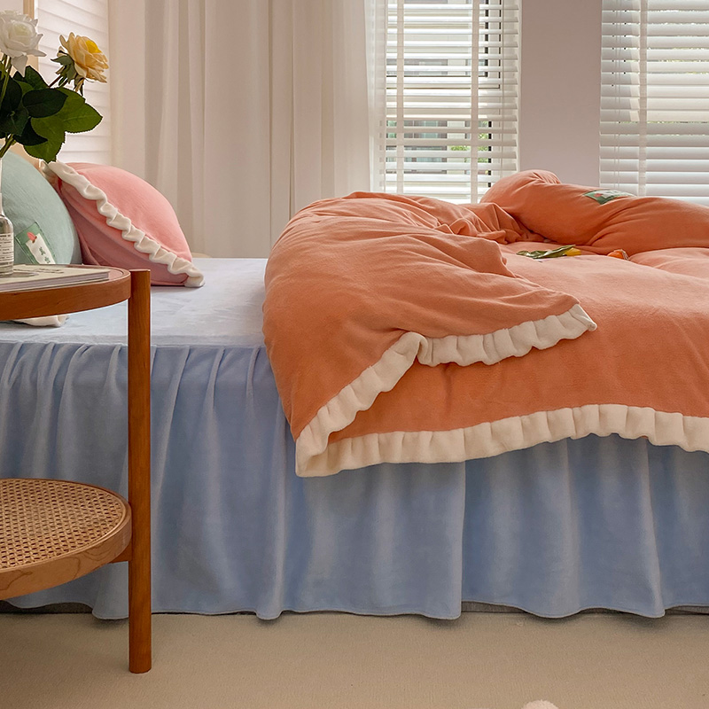 金爱家2021新款牛奶绒230g糖果色单床裙 糖果色-美人蕉橙