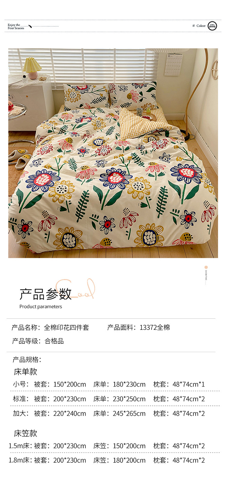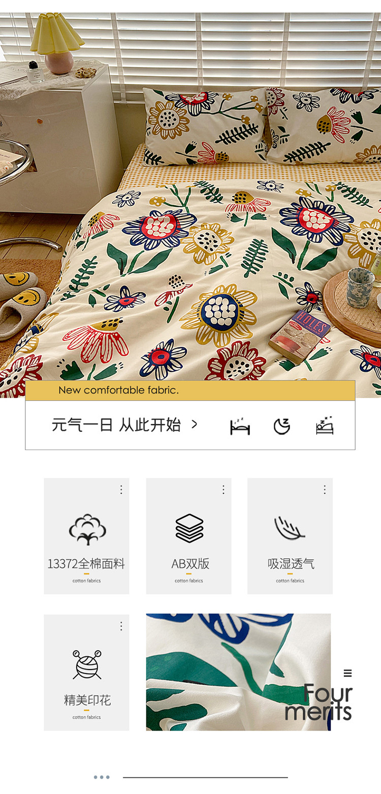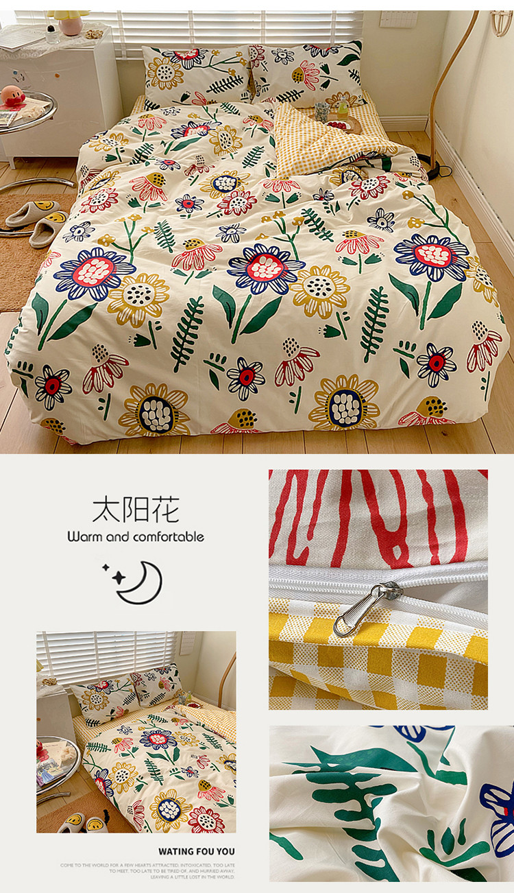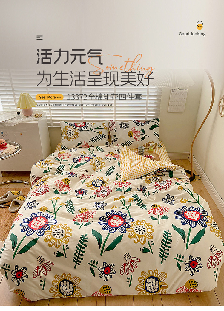 商品名称:雅居纺家纺 2022新款13070全棉四件套 太阳花