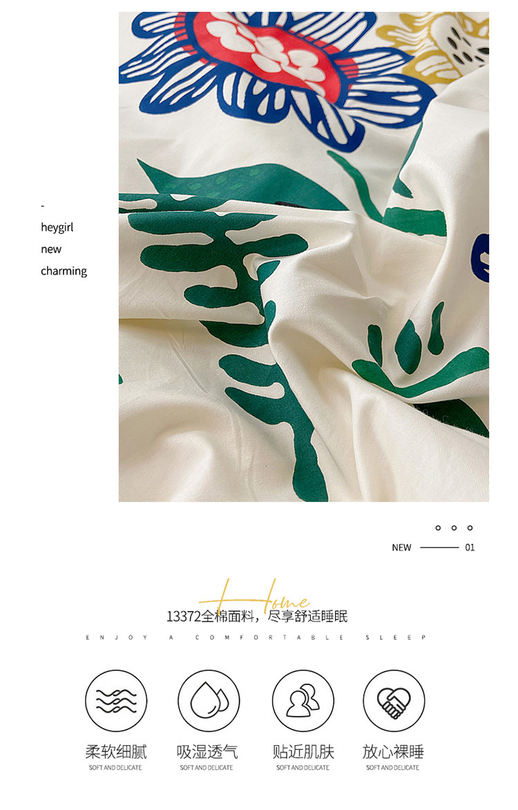 (总)雅居纺家纺 2022新款13070全棉印花四件套,波纹,多彩,简笔画,莓关系,奶油绿豹纹,倾心,数字