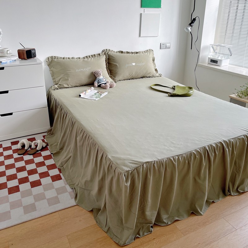 (总)六巷胡同 2022春夏新品ins风水洗棉单品床裙三件套