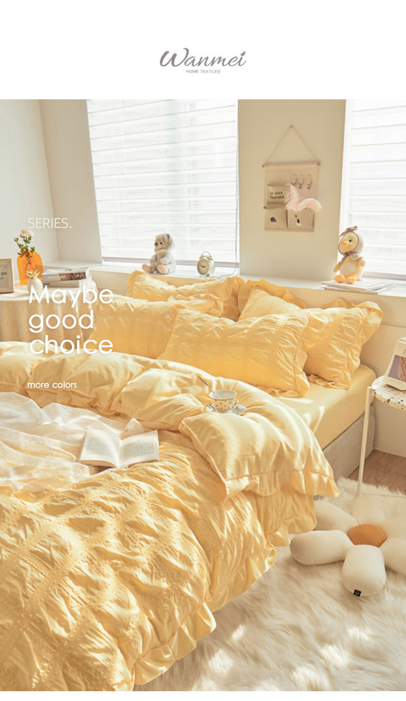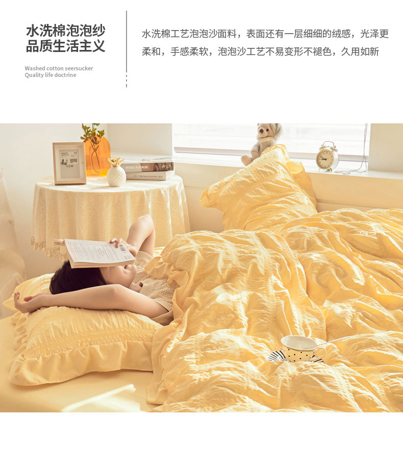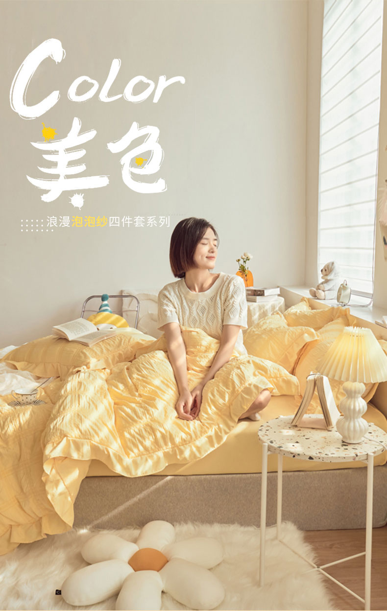 商品名称:ab家纺 2023新款泡泡纱水洗棉四件套 泡泡纱姜黄