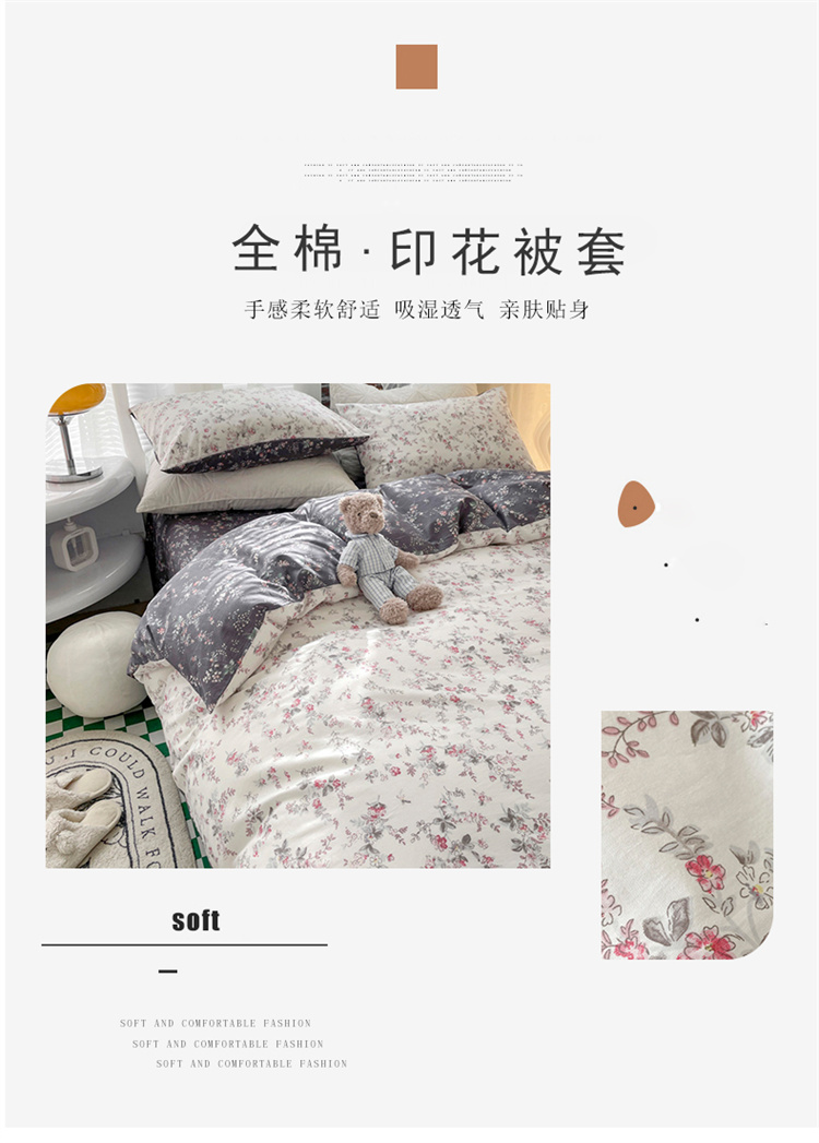 商品名称:捌月 2024新款13372喷气全棉单被套-陌上花开 恬静