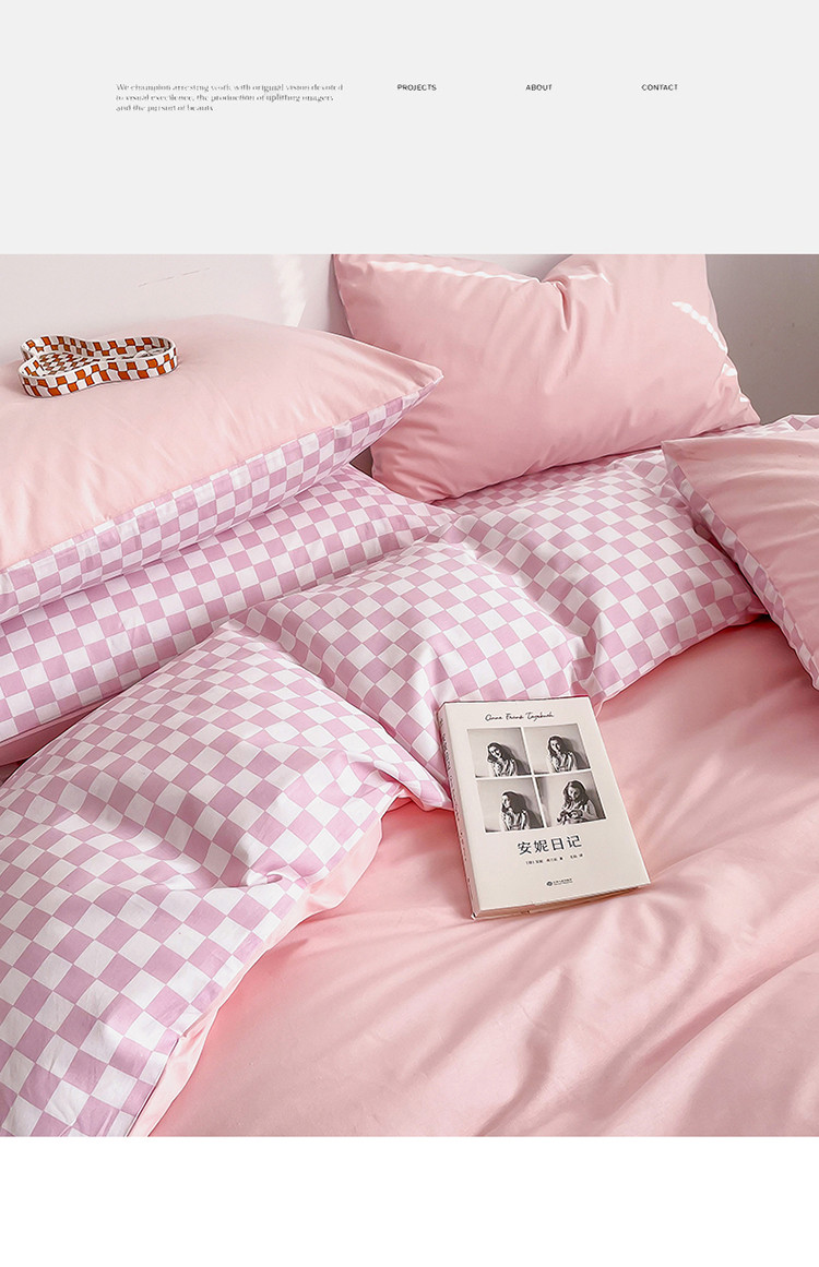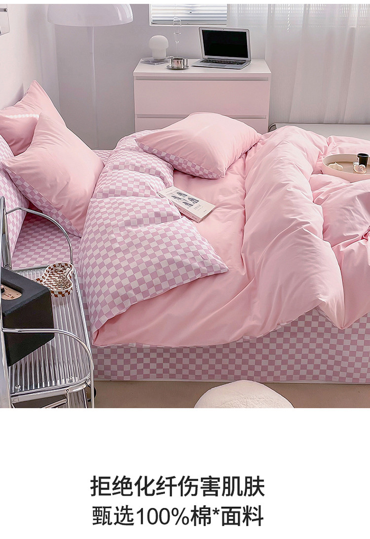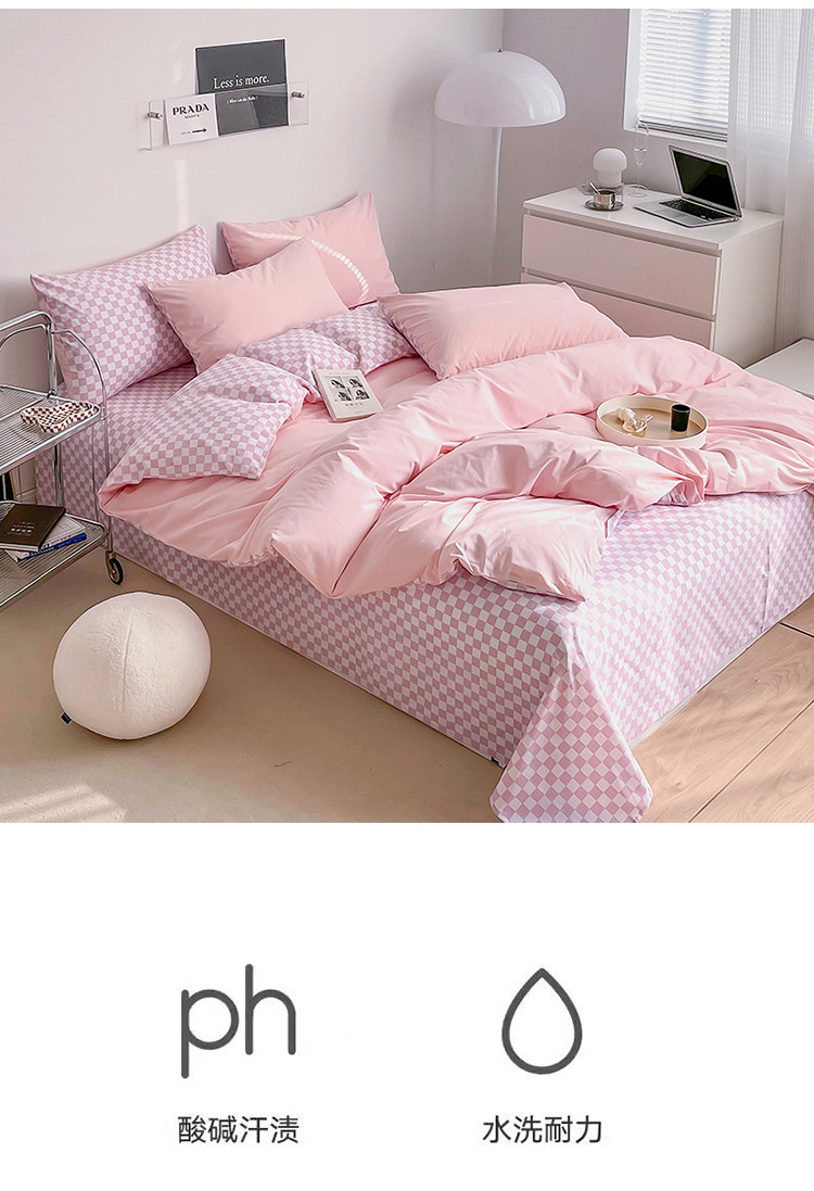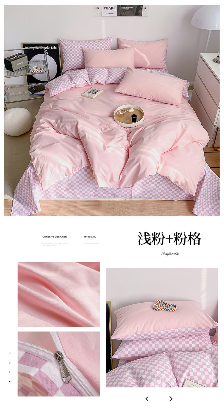 当前位置: 91家纺网 > 商品网购 > 床品套件 > 四件套 > 水洗棉四件套 > 798 新款全棉13070水洗棉纯色A+棋盘格B四件套 浅粉+粉格