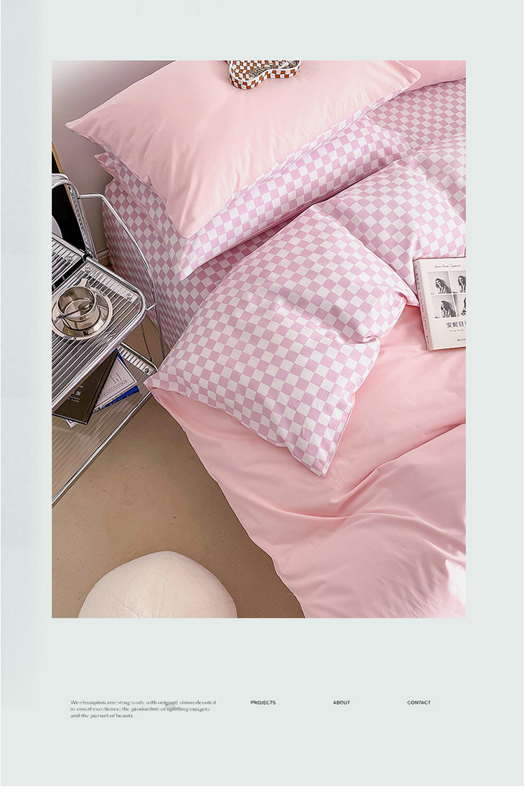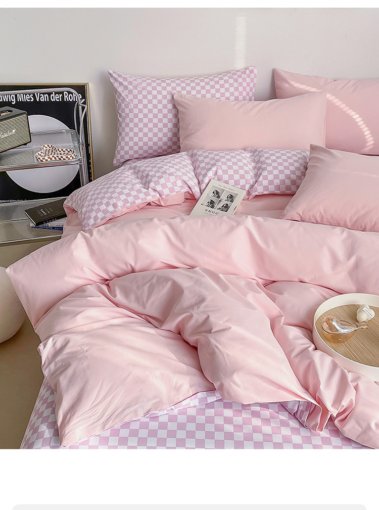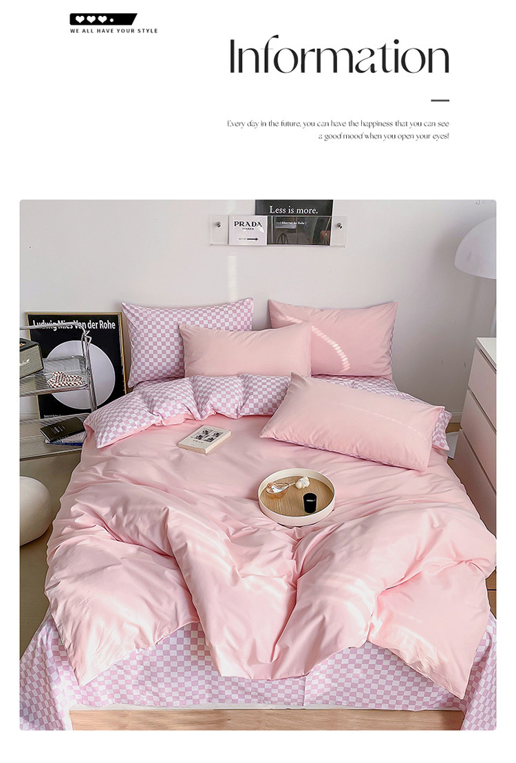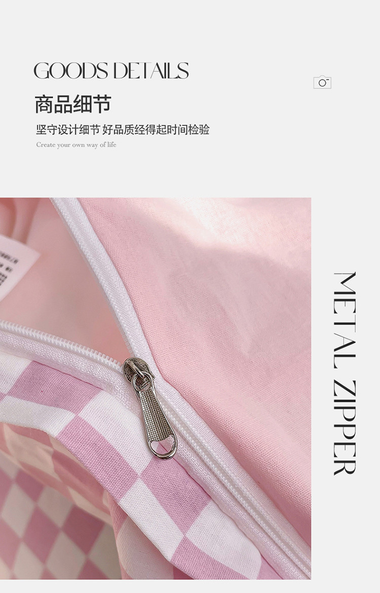 当前位置: 91家纺网 > 商品网购 > 床品套件 > 四件套 > 水洗棉四件套 > 798 新款全棉13070水洗棉纯色A+棋盘格B四件套 浅粉+粉格