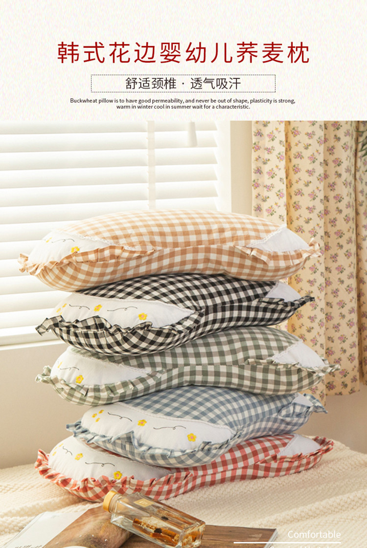 (总)明星枕业 2025新款全棉色织水洗棉枕头枕芯,凯西亚兰45*15+10 - 25*40荞麦壳,克鲁奇绿45*15+10 - 25*40荞麦壳