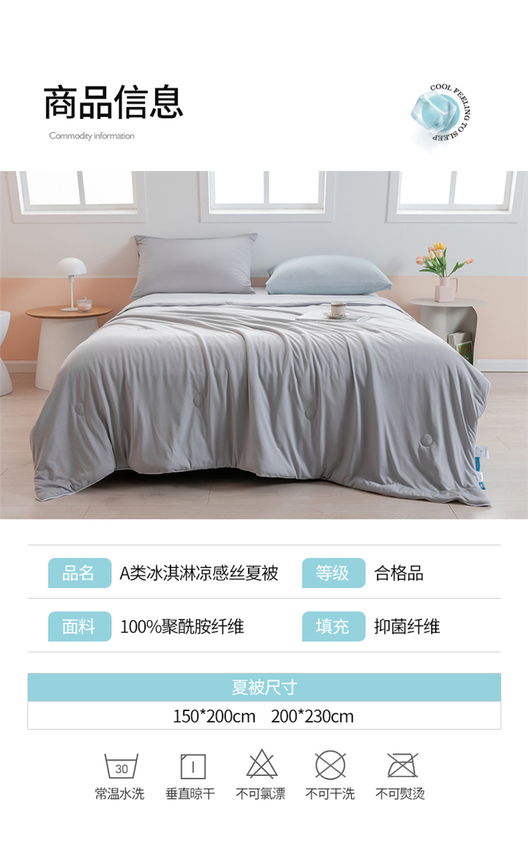 商品名称:鸣升 新款100%锦纶A类凉感丝夏被冰淇淋空调被网红直播 高级灰