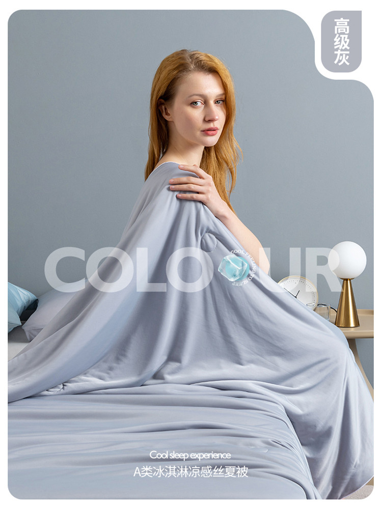 鸣升 新款100%锦纶A类凉感丝夏被冰淇淋空调被网红直播 高级灰